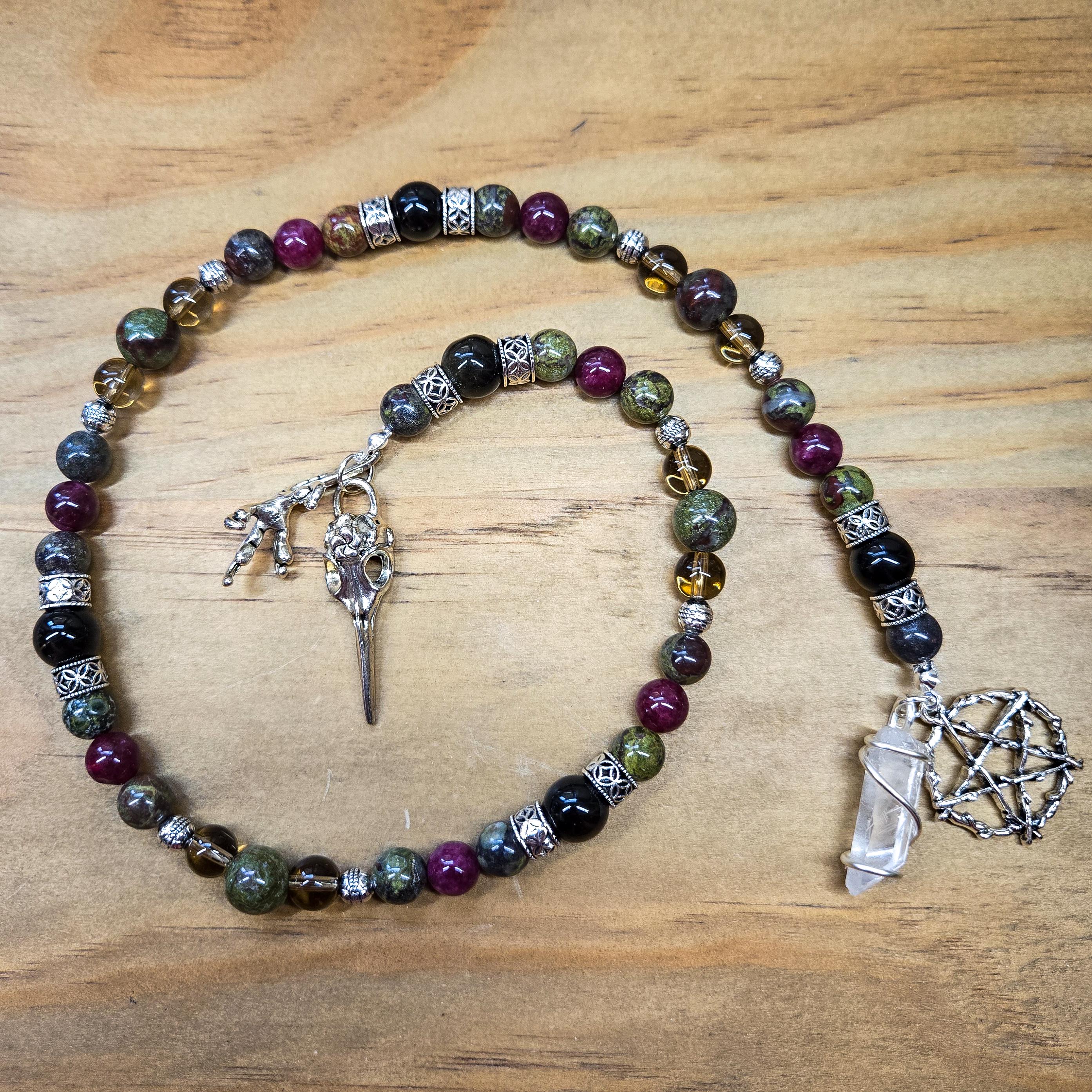 Enter the forest and walk the winding path to the ancient hut on chicken legs—the realm of Baba Yaga, the wise and wild crone of Slavic myth. These devotional prayer beads are crafted for those ready to walk beside her in shadow and strength, honoring the sacred power of the in-between.