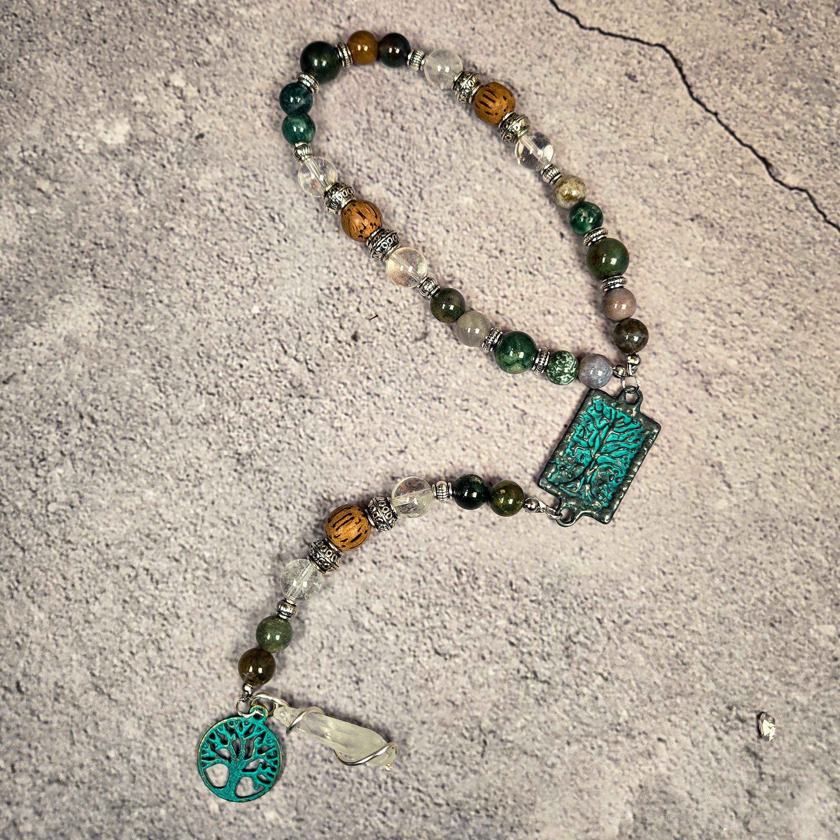 This wrist rosary was crafted for the nature witch—the one who feels the pulse of the earth beneath their feet and the whisper of the wind in their soul. Each bead embodies the grounding, nurturing, and ever-renewing energy of the natural world, helping you align with the rhythms of the seasons and the spirit of the land.