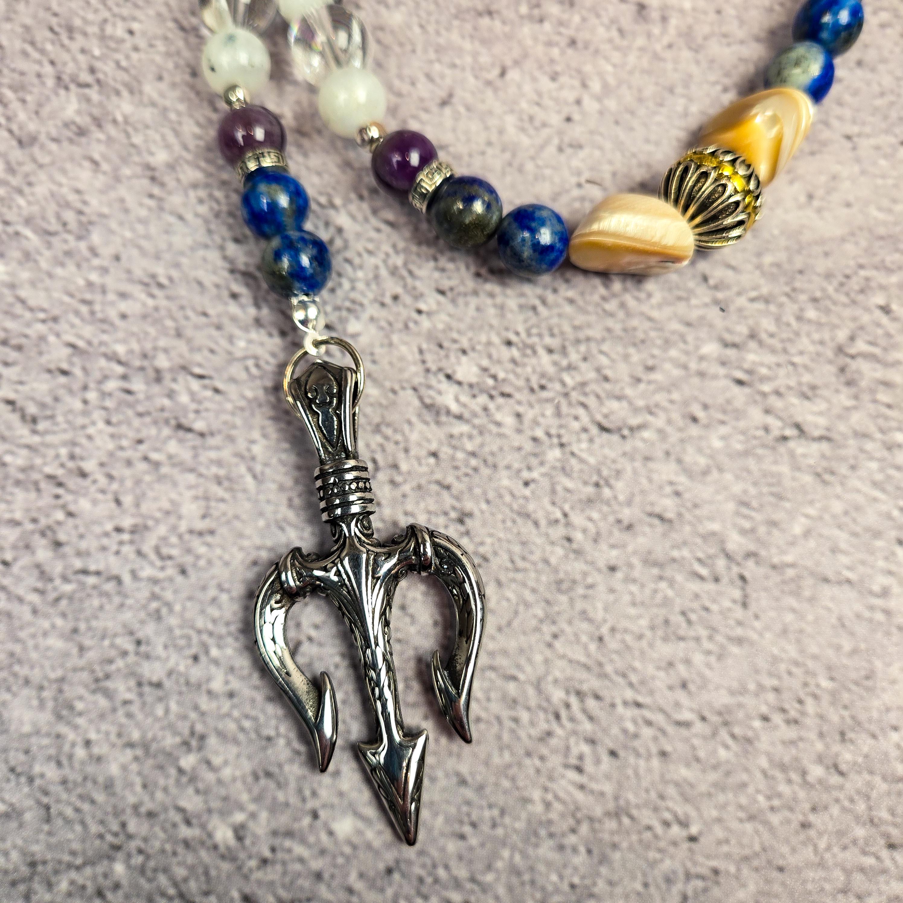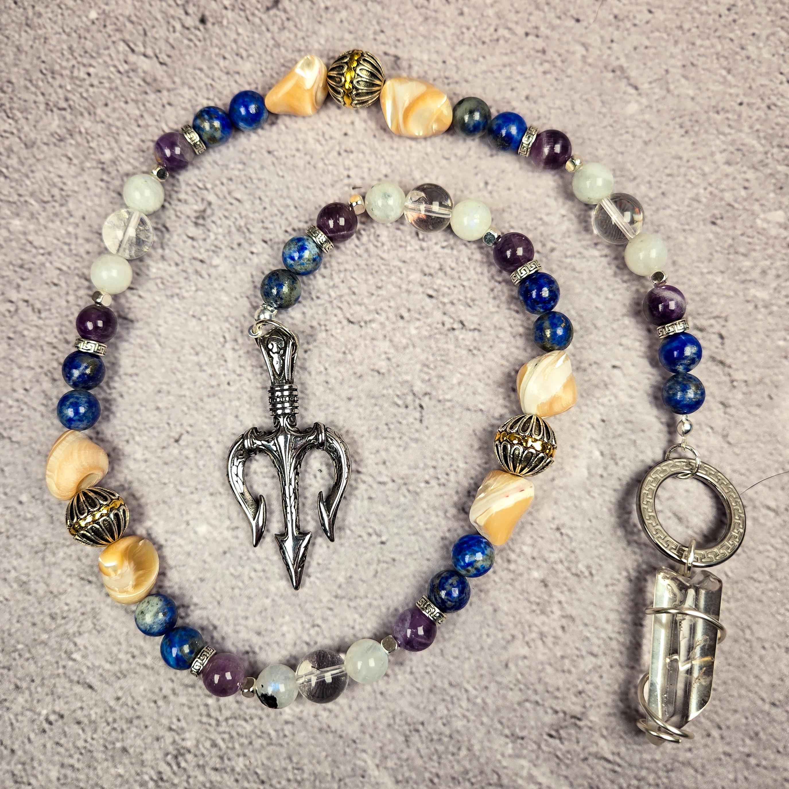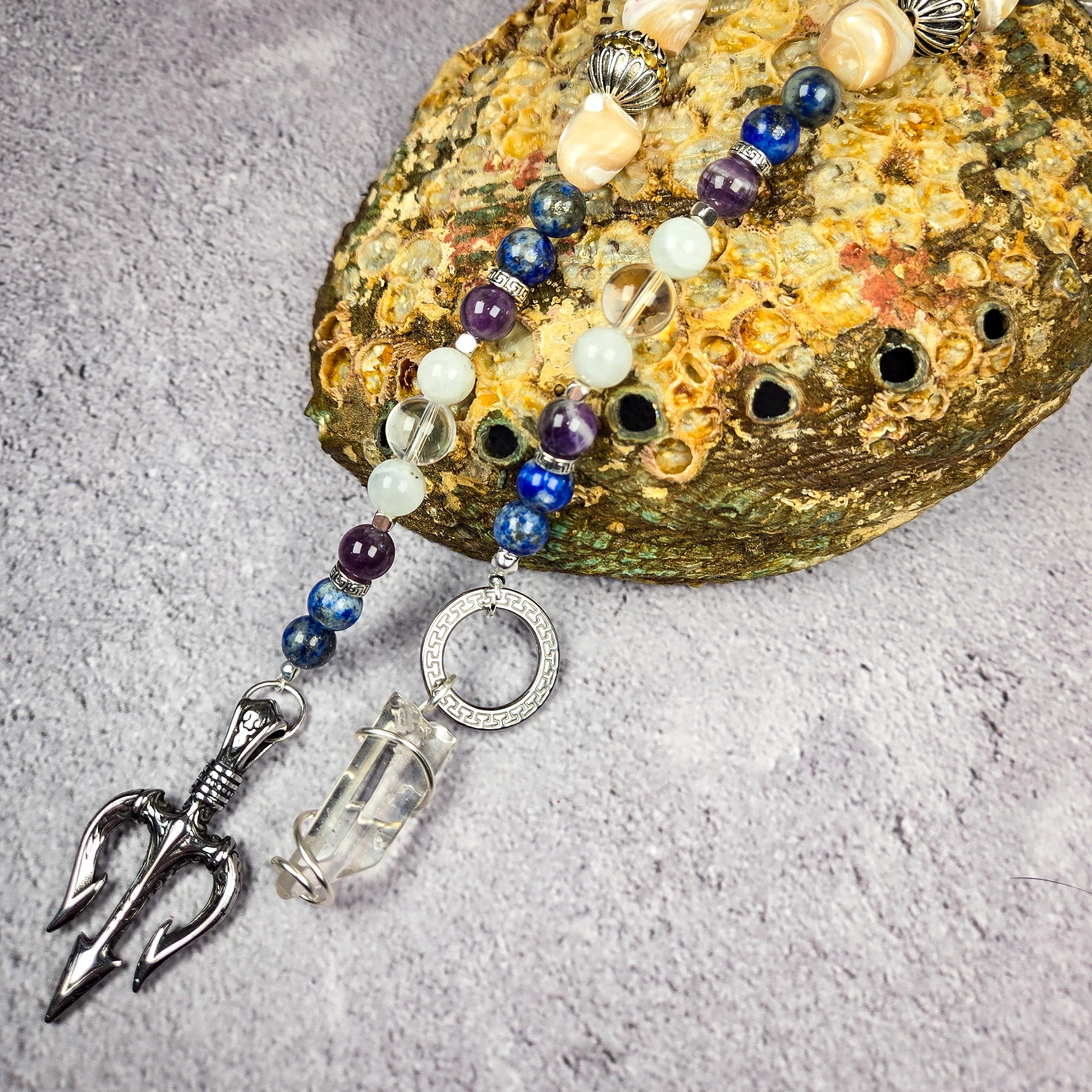 Dive deep into the sacred power of the sea with this handcrafted set of prayer beads honoring Poseidon, the ancient Greek god of the ocean, storms, earthquakes, and horses. Known as the Earth-Shaker and ruler of the deep, Poseidon commands respect, strength, and reverence — and these beads are crafted to reflect just that.