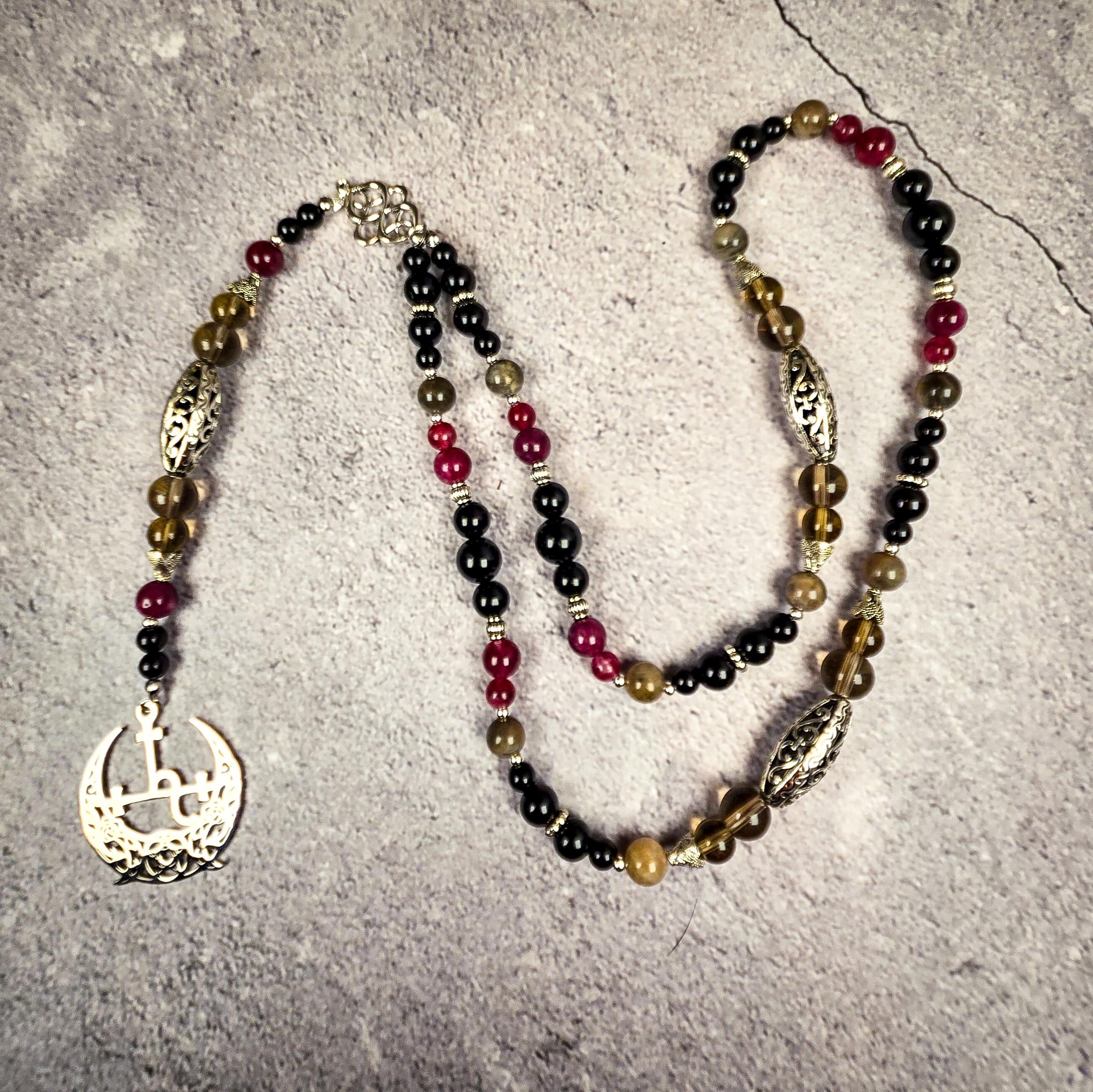 These prayer beads were created to honor Lilith, the dark divine goddess of independence, sovereignty, and sacred rebellion. She is the embodiment of empowerment, sensuality, and shadow wisdom. Each stone was chosen to reflect her essence: fierce protection, self-mastery, and unapologetic truth.