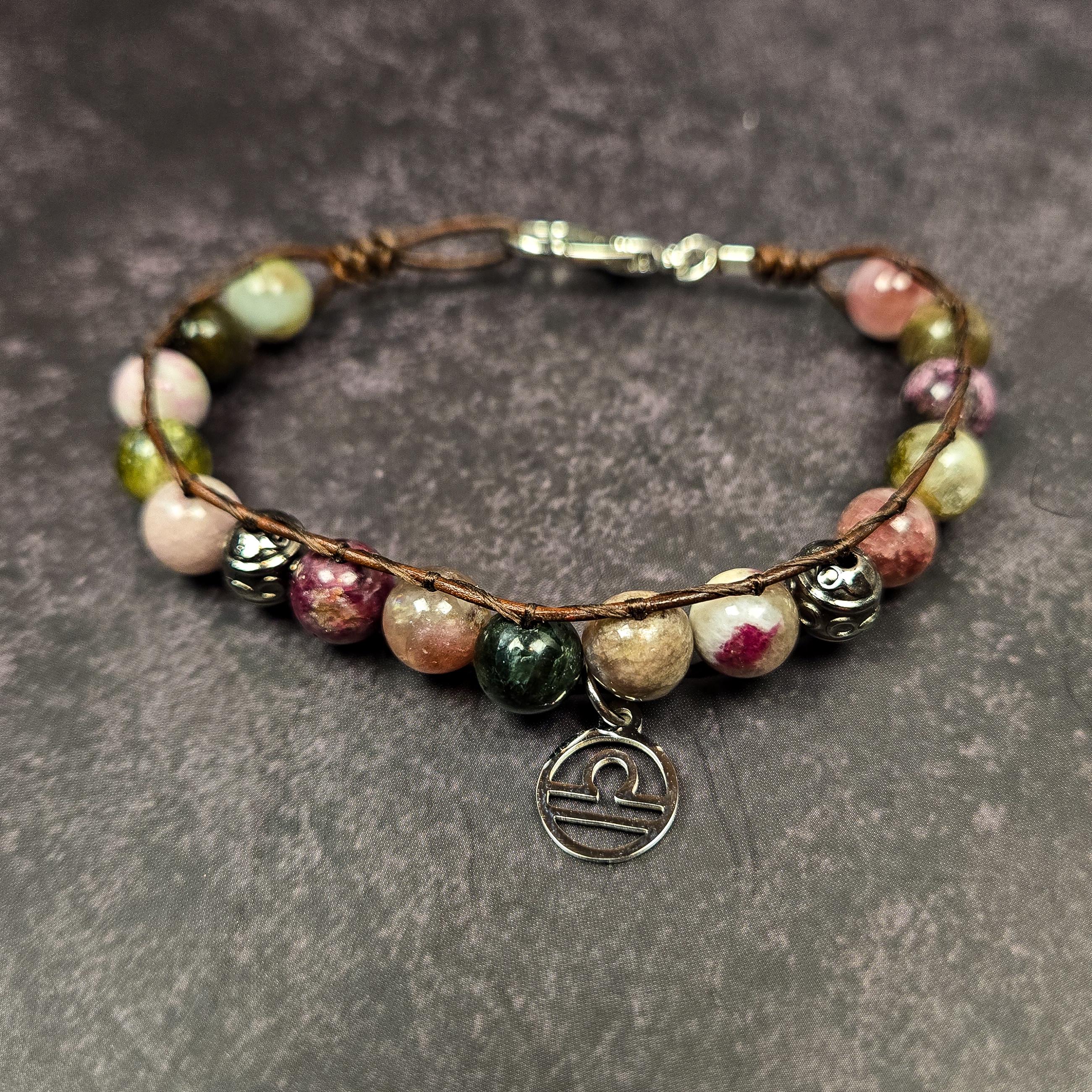 Celebrate Libra’s graceful, balanced energy with this handcrafted leather wrap bracelet made with vibrant multicolored tourmaline beads. Designed to support emotional harmony, clear communication, and aligned decision-making, this piece honors Libra’s love of beauty, fairness, and peaceful connection.