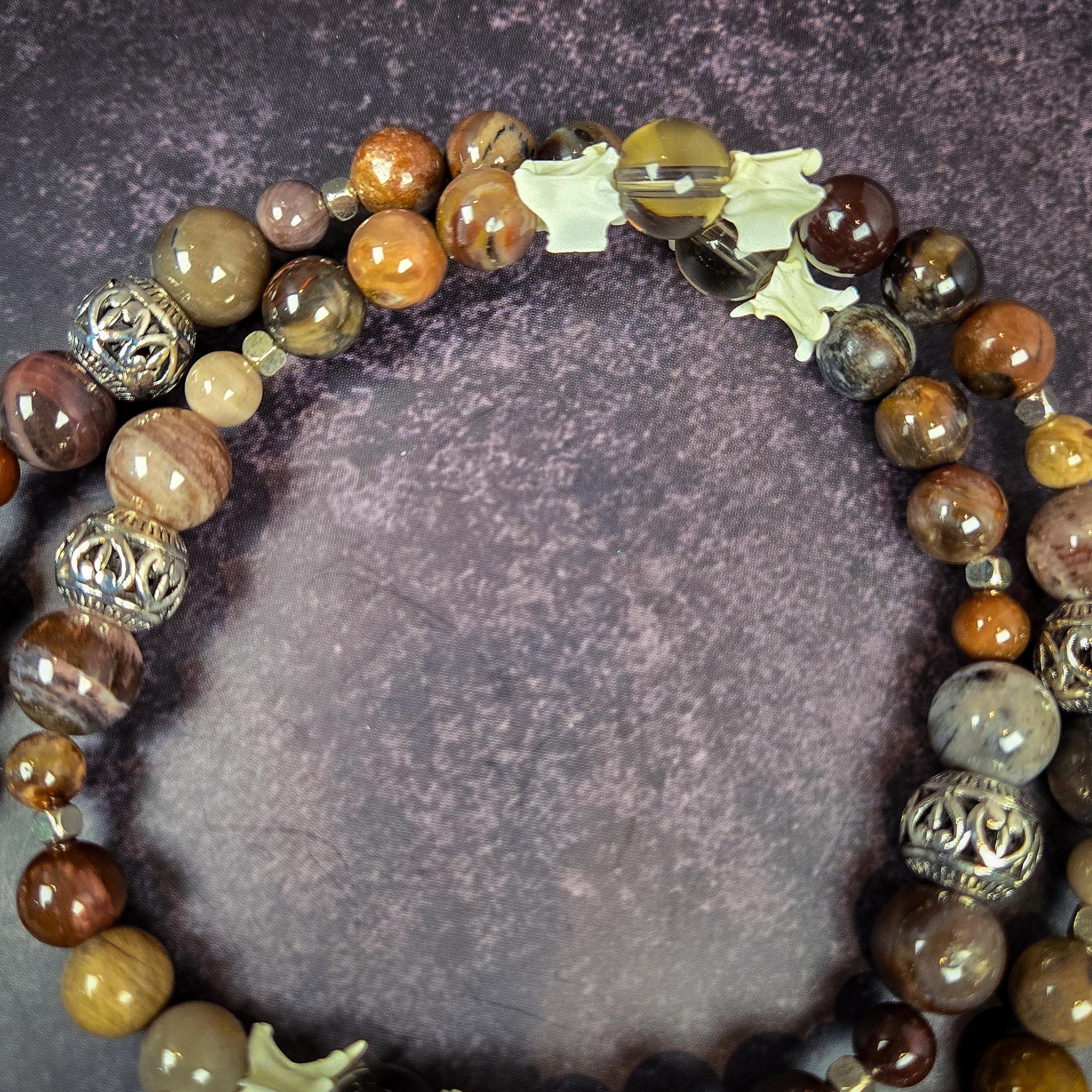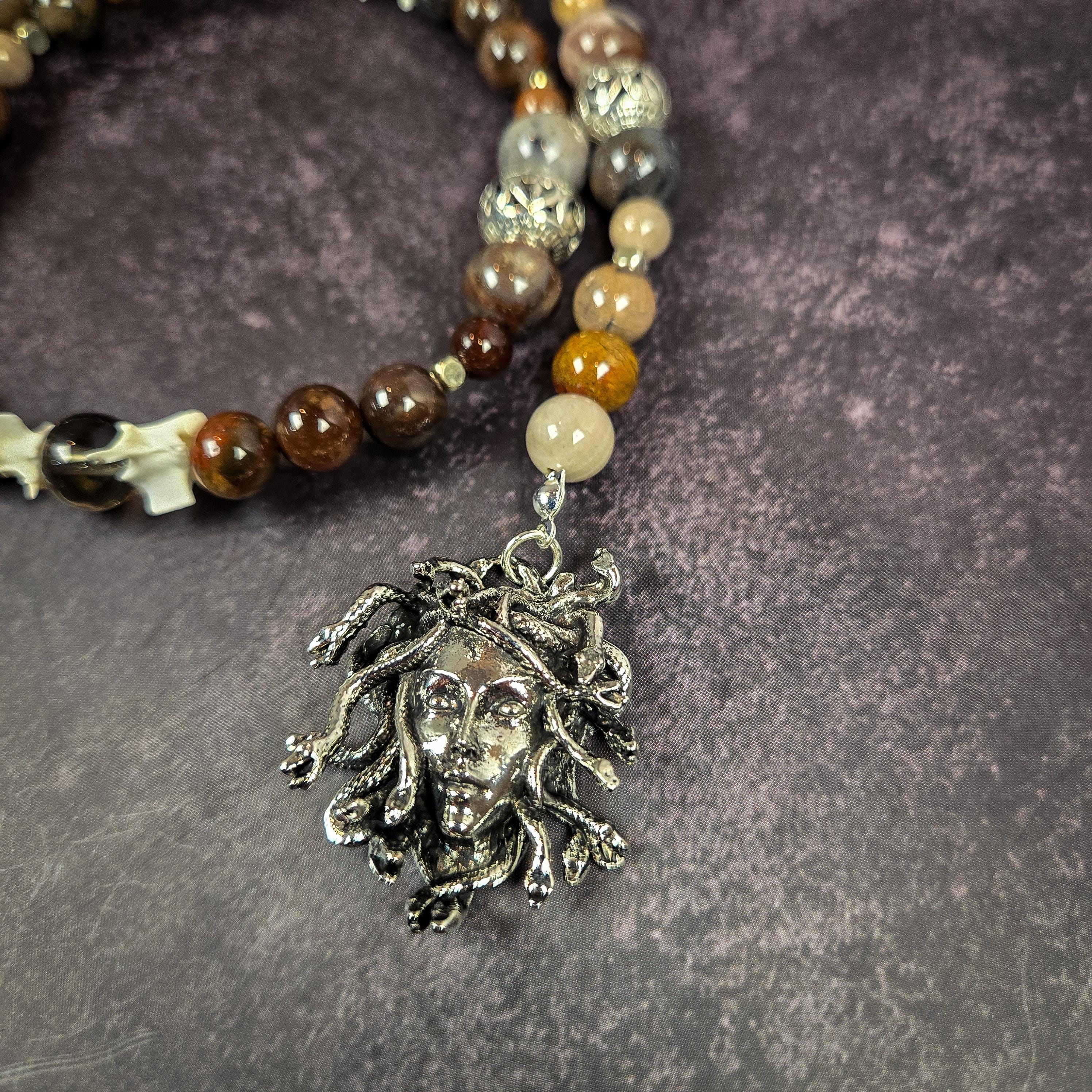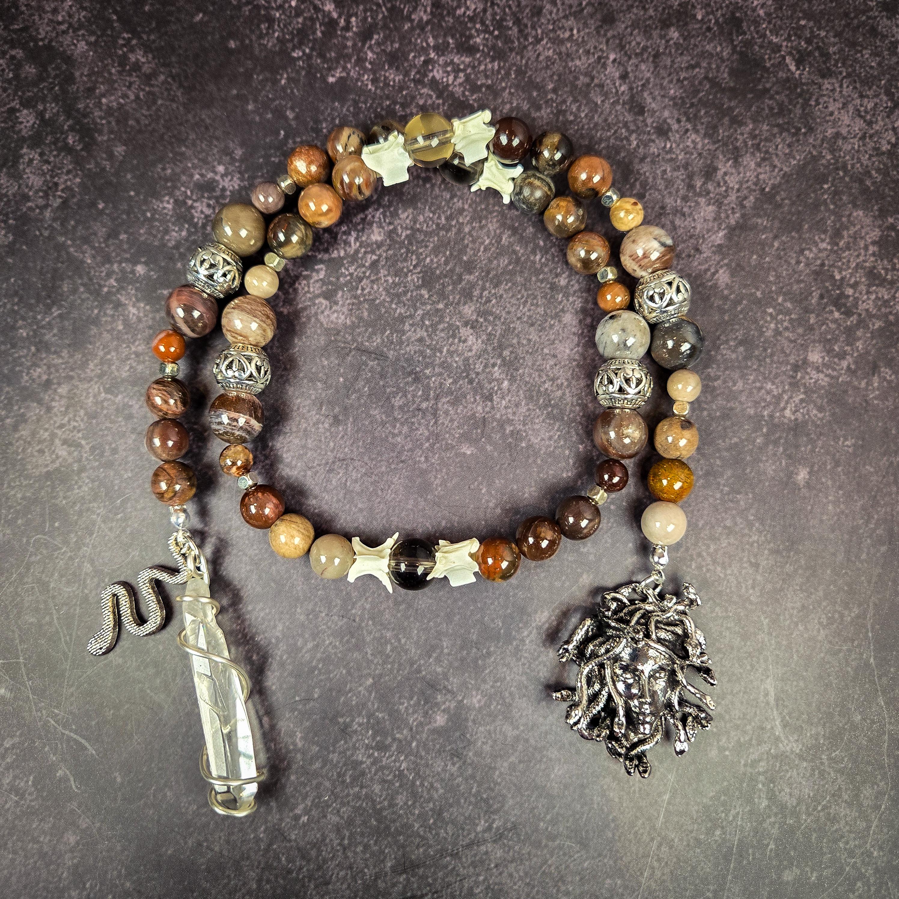 Honor the fierce and mysterious power of Medusa with this handcrafted set of devotional prayer beads, designed to channel her ancient energy of transformation, sovereignty, and protection. Each bead has been intentionally chosen to reflect her deep connection to earth, shadow, and myth.