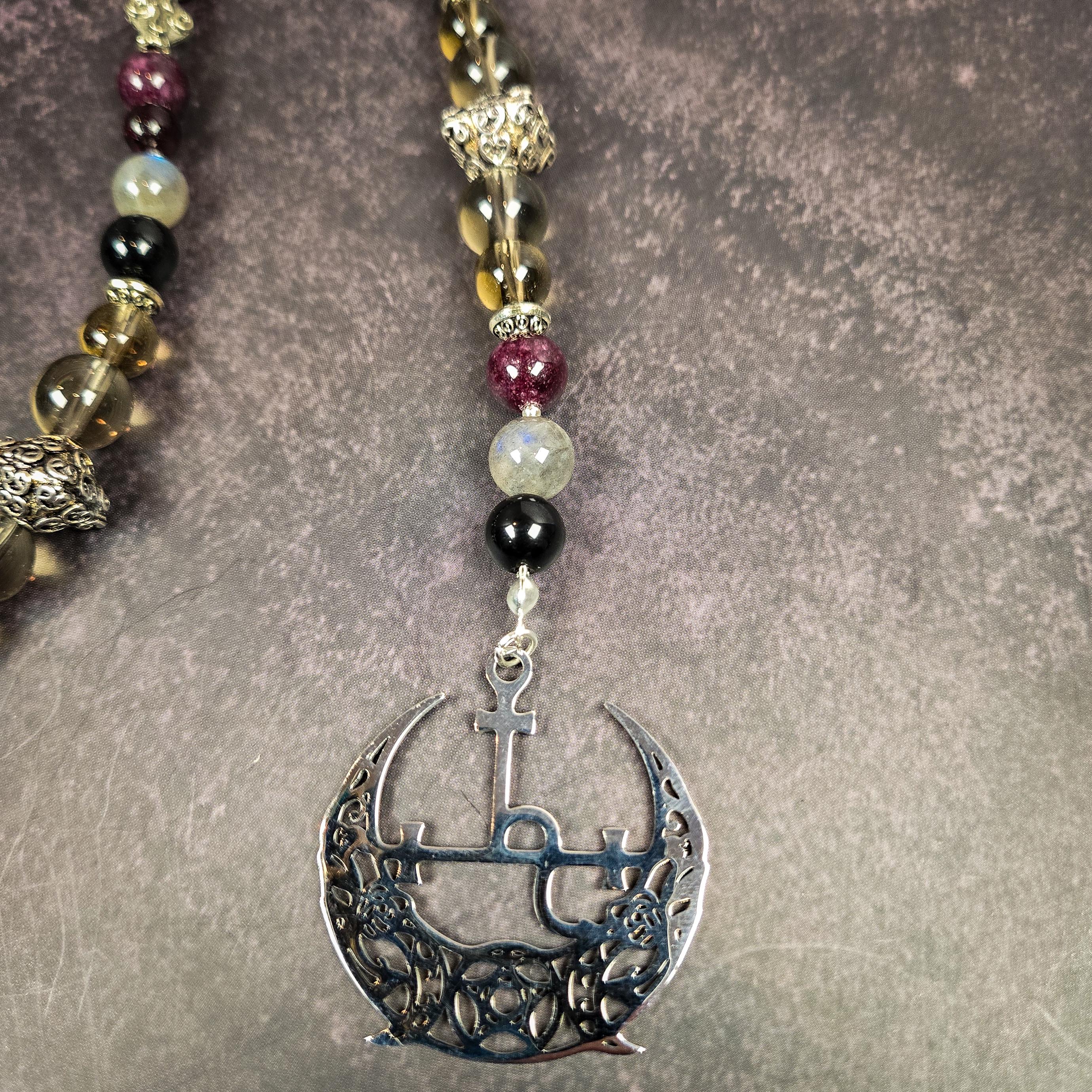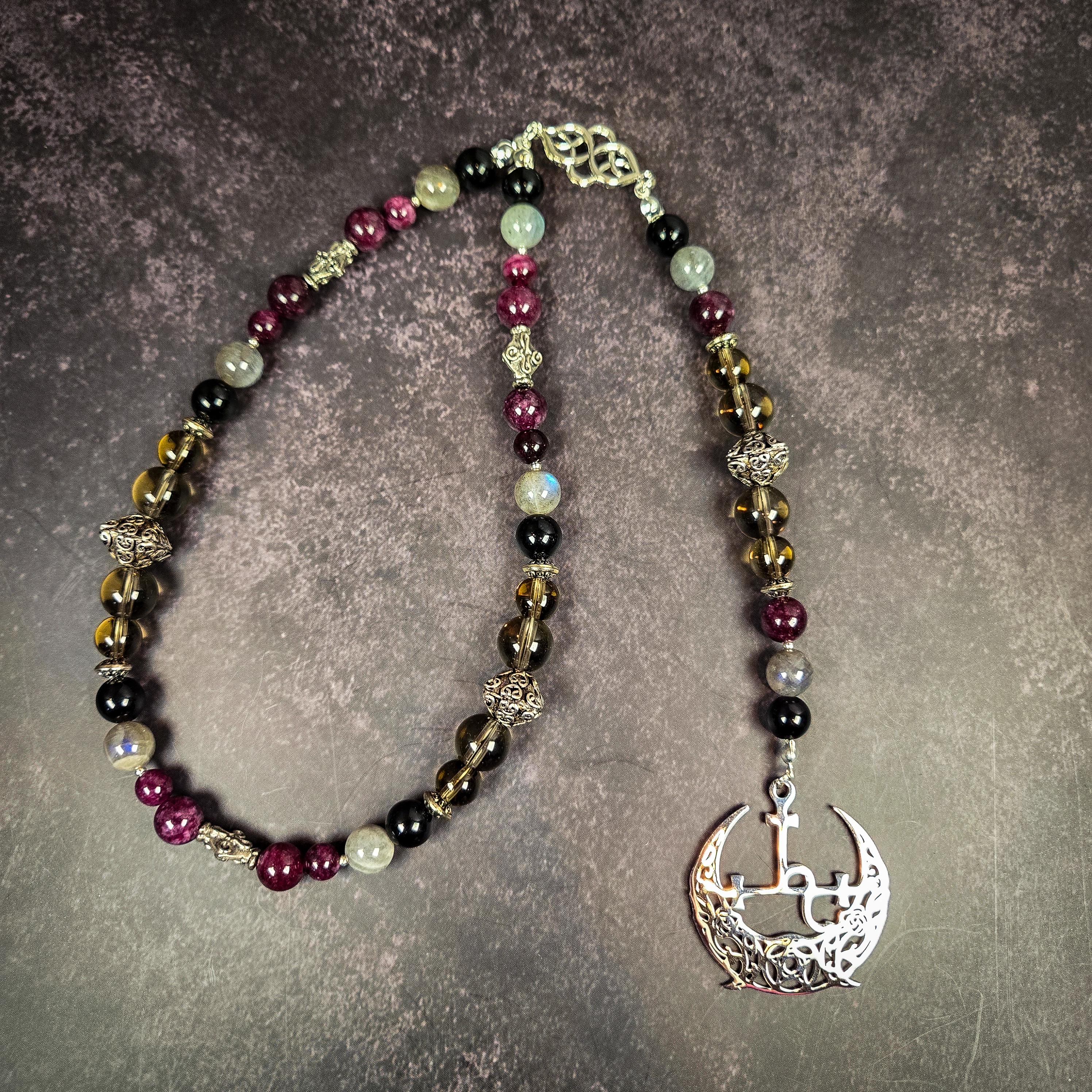 Honor the fierce, liberated, and deeply transformative energy of Lilith with this handcrafted wrist rosary created for practitioners who walk boldly with the Dark Divine Feminine. This piece channels Lilith’s sovereignty, sensuality, shadow wisdom, and unyielding independence, making it an ideal companion for devotional practice, shadow work, empowerment spells, and personal liberation.