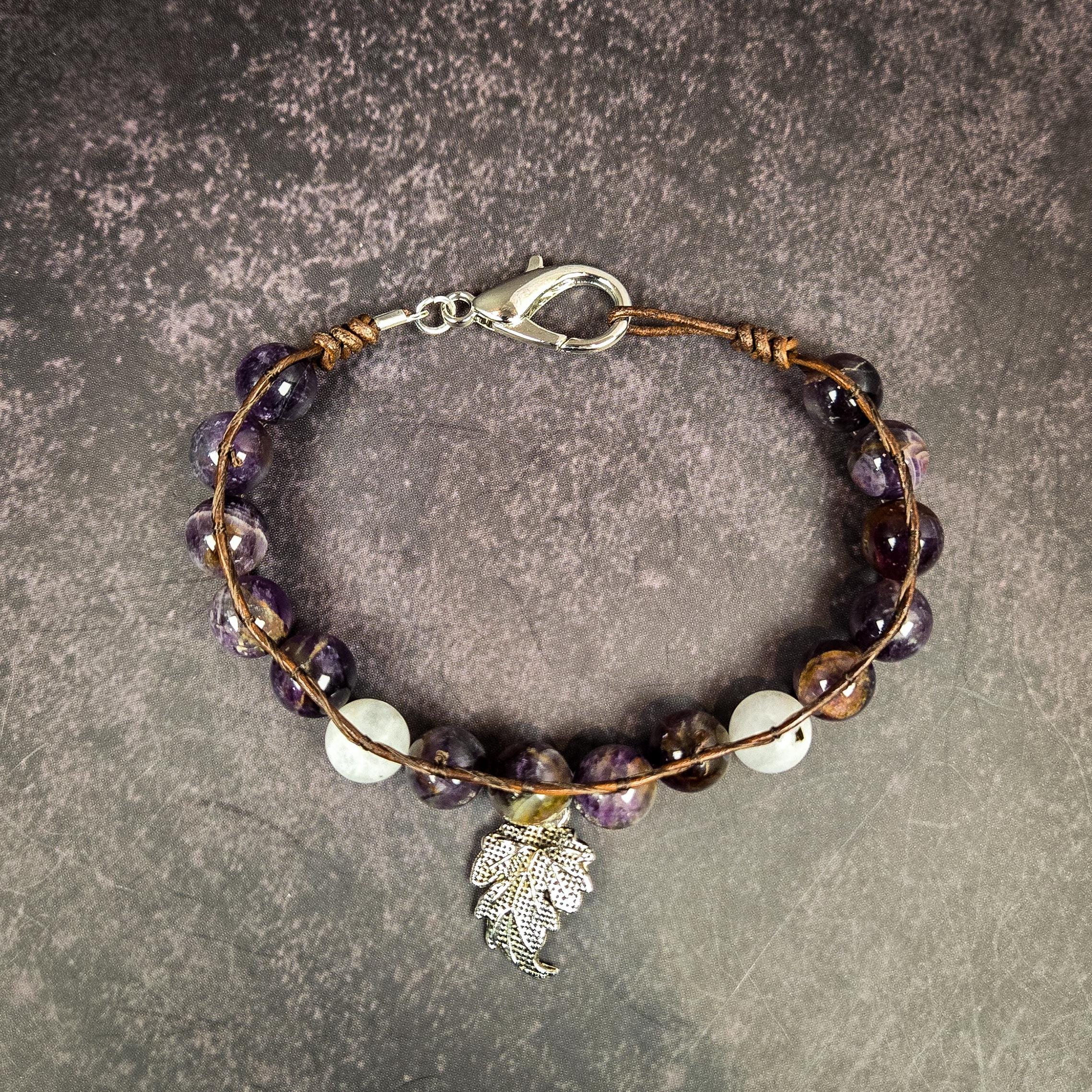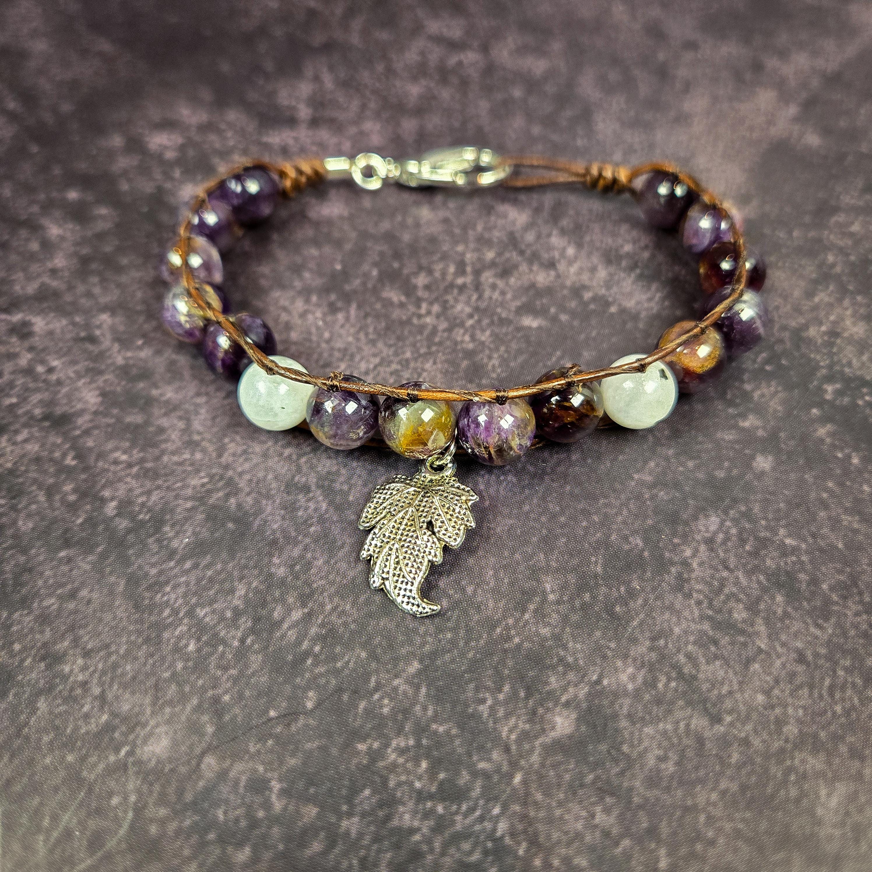 The leaf charm serves as a symbol of growth, renewal, and connection to the natural world, making this bracelet especially meaningful for those who work closely with earth-based spirituality or seasonal cycles.