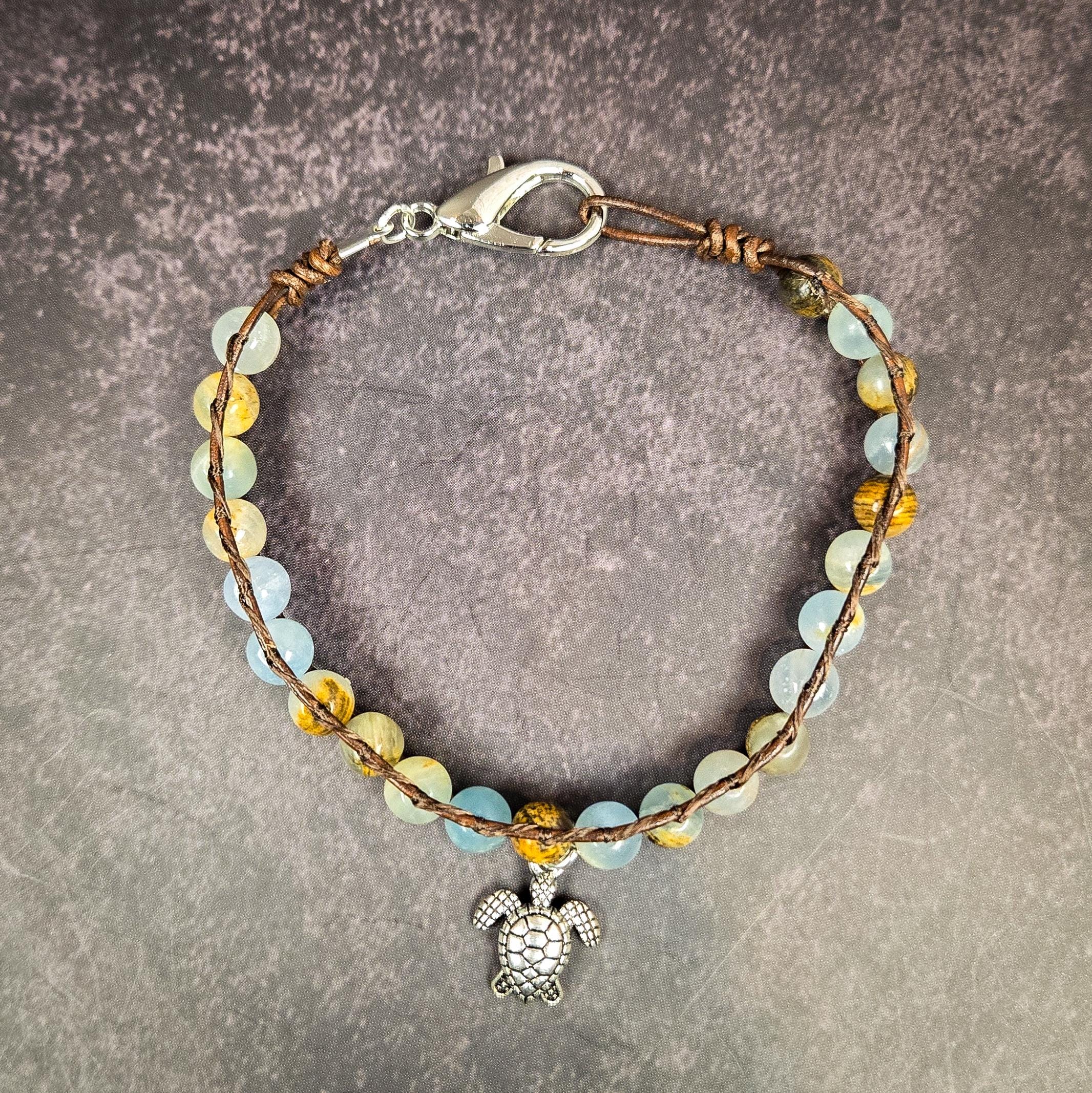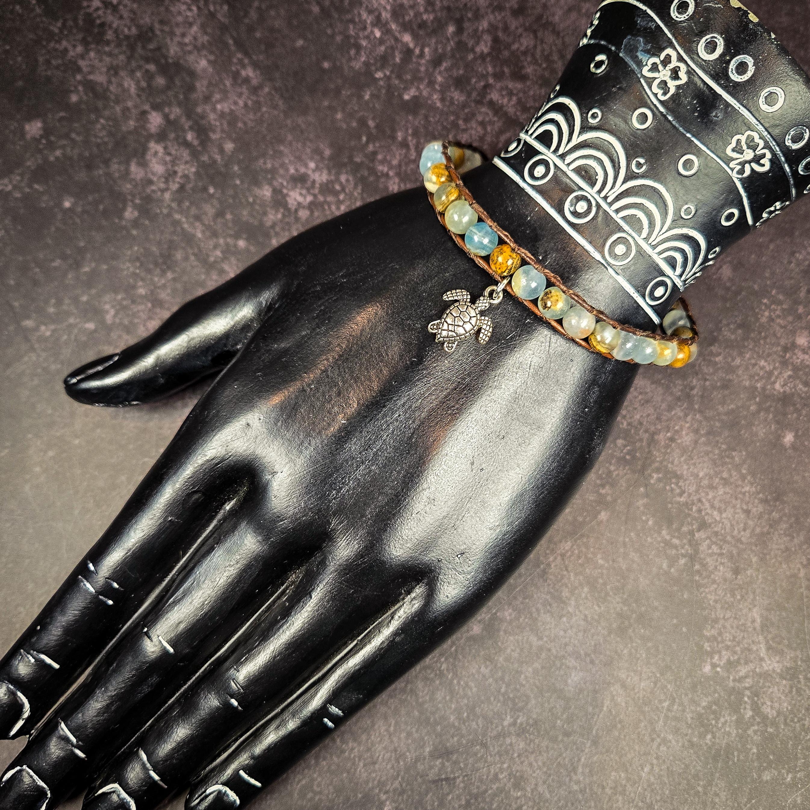 The turtle charm symbolizes patience, protection, longevity, and steady forward movement. In many spiritual traditions, the turtle represents wisdom earned over time and the importance of moving through life at your own pace, making this bracelet especially meaningful for long-term intentions and personal growth work.