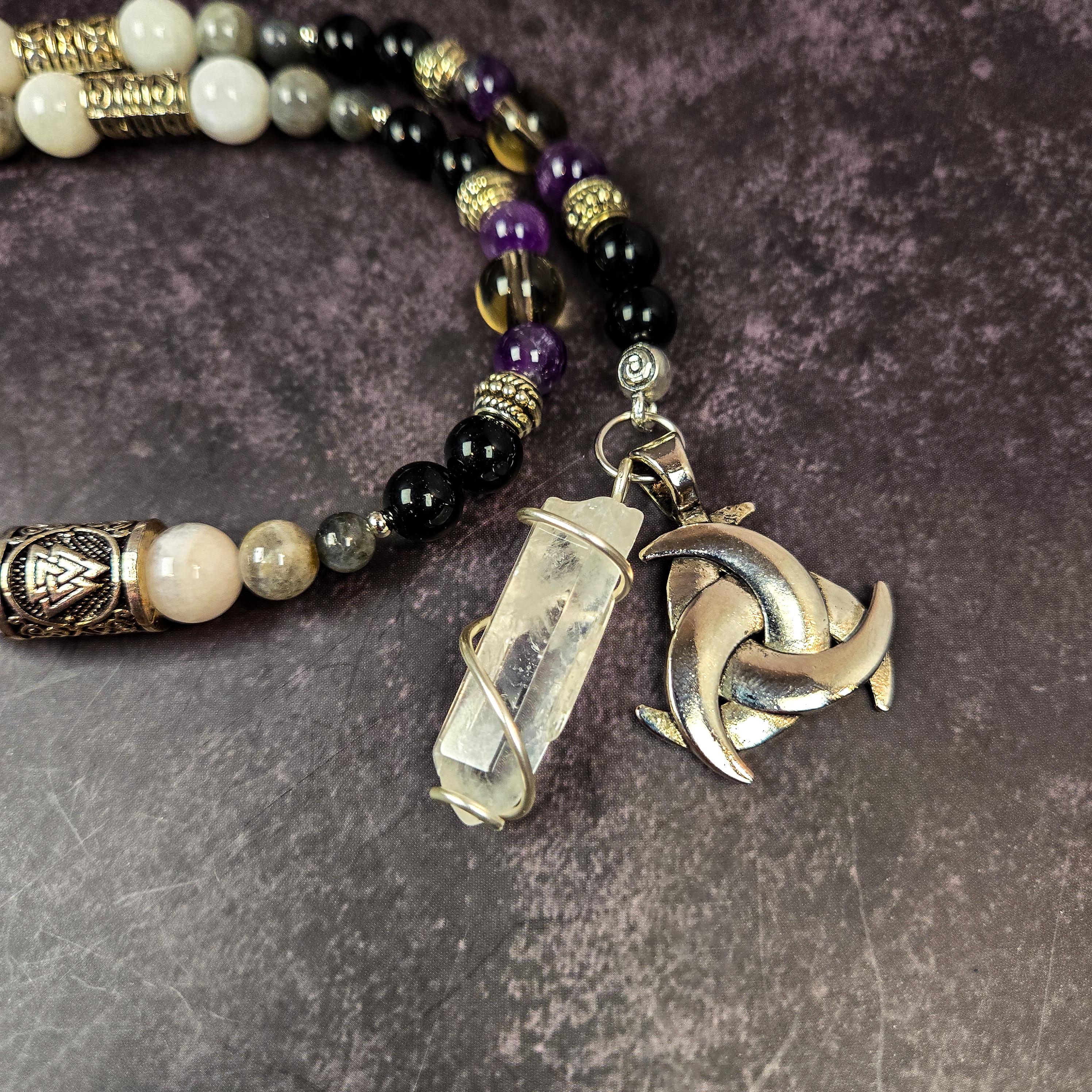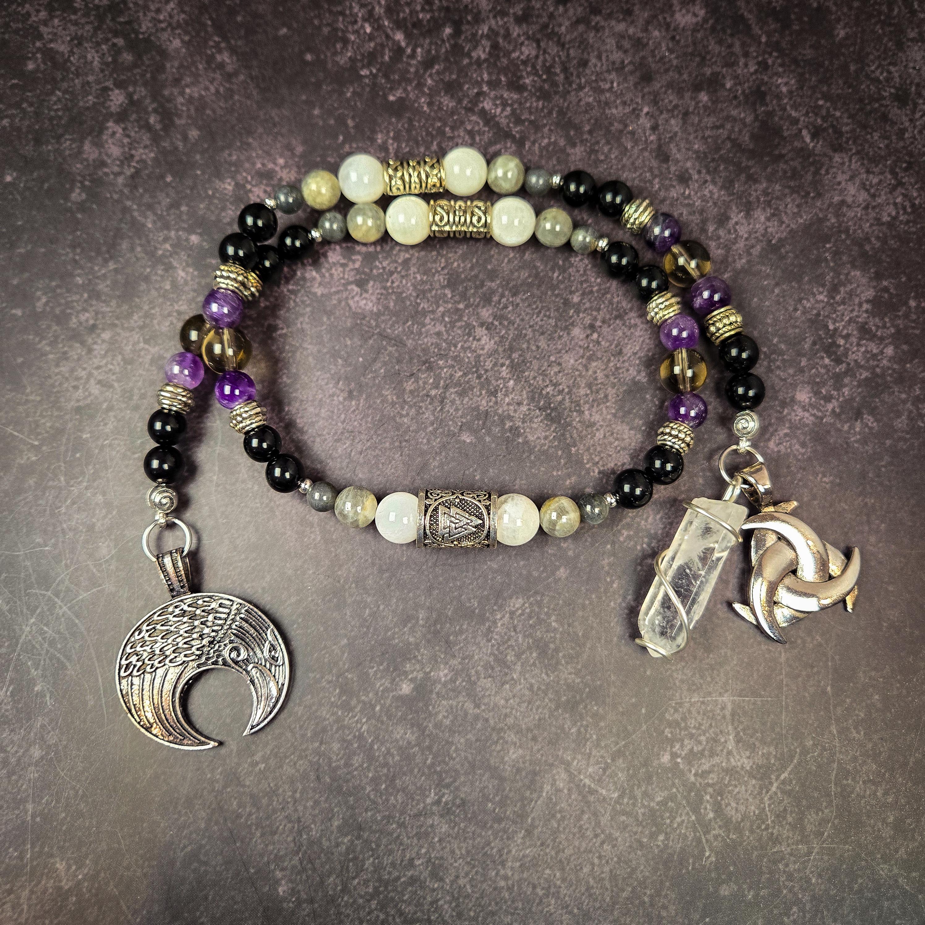 Honor Mani, the Norse god of the moon, with this exquisite prayer bead set, designed to capture the ethereal and mystical energy of the night sky. Each bead is carefully chosen to resonate with Mani's lunar influence, making this a powerful tool for your spiritual practices.