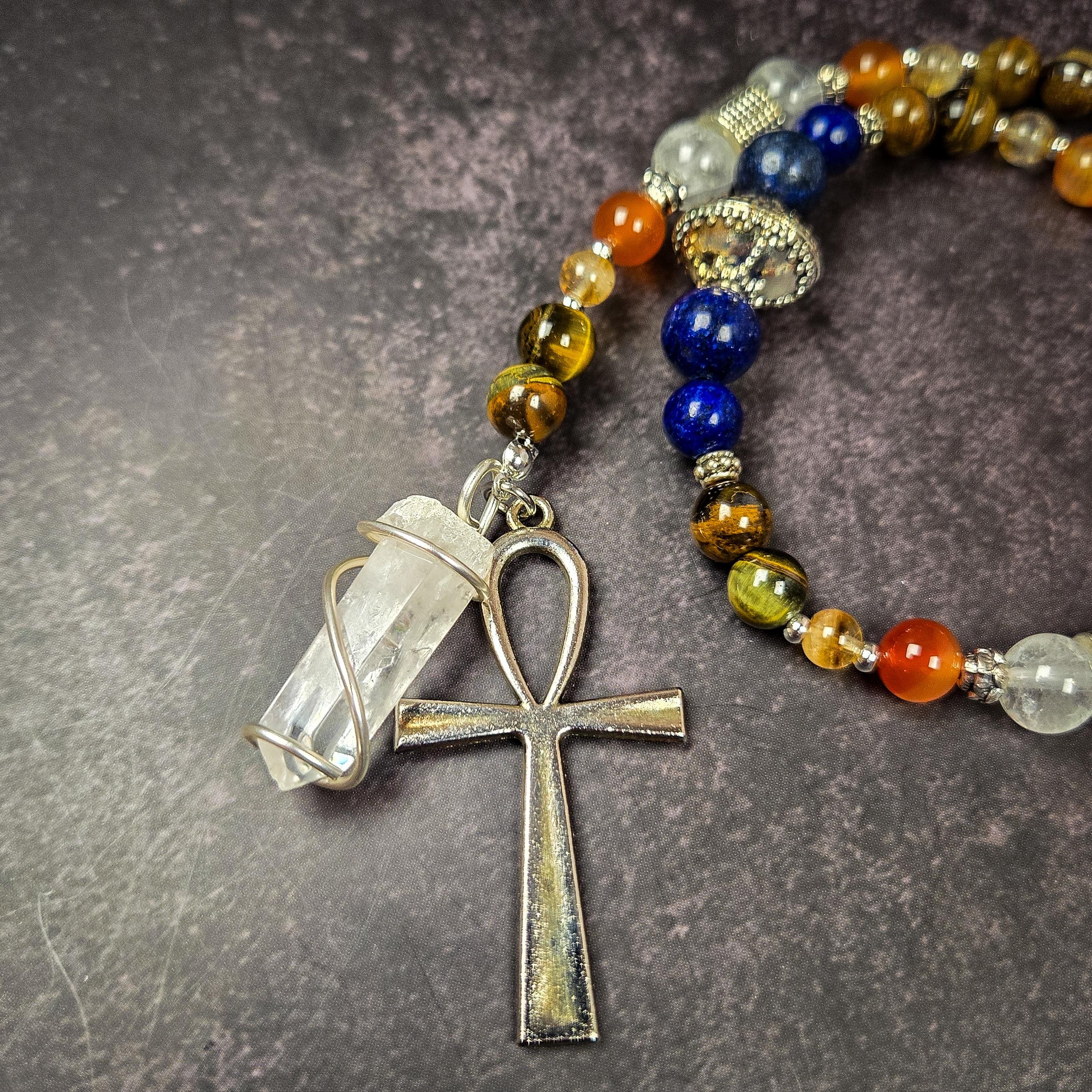 Embrace the radiant energy of Ra, the Egyptian God of the Sun, with these exquisitely crafted prayer beads. Each bead has been thoughtfully selected for its unique properties, creating a powerful tool for your spiritual practice and connection to this life-giving deity: