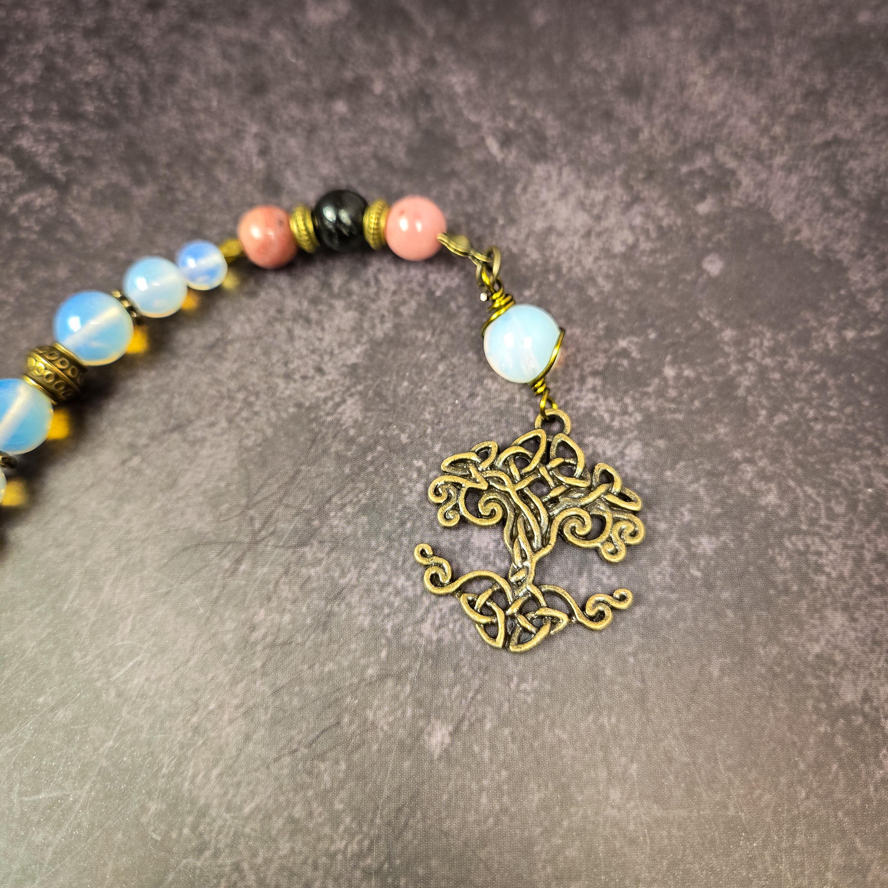 This wrist rosary may be used for prayer, meditation, intention work, or worn as a daily energetic companion. Each piece is intentionally crafted and energetically cleansed, offering a harmonious blend of emotional support and protective grounding.