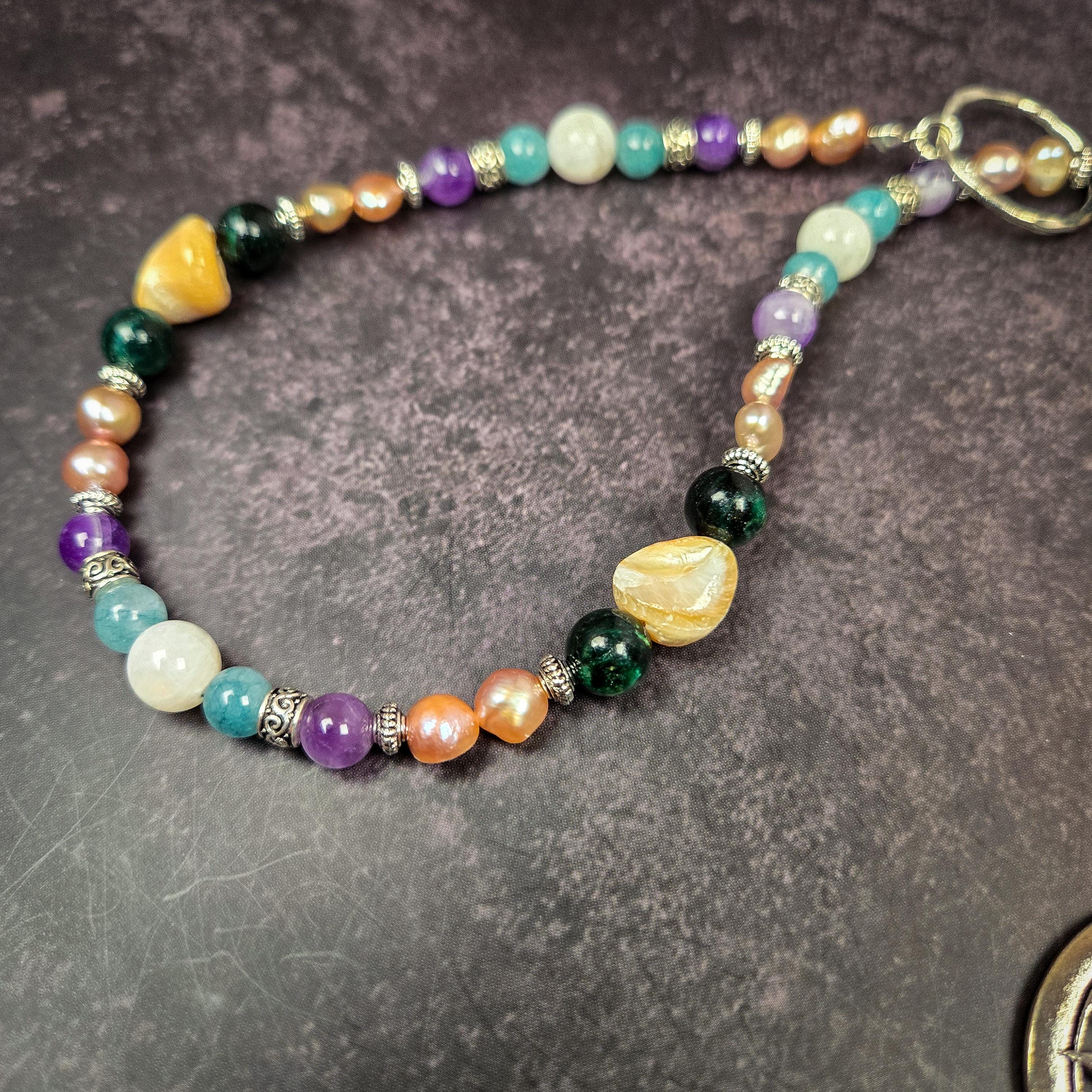 Dive into the healing depths of the emotional and intuitive realms with this handcrafted devotional wrist rosary, dedicated to the Element of Water. Designed to be worn as a tactile prayer tool or a personal talisman of fluidity, this wrap-style rosary helps the practitioner align with the tides of the soul and the cleansing power of the Great Sea.