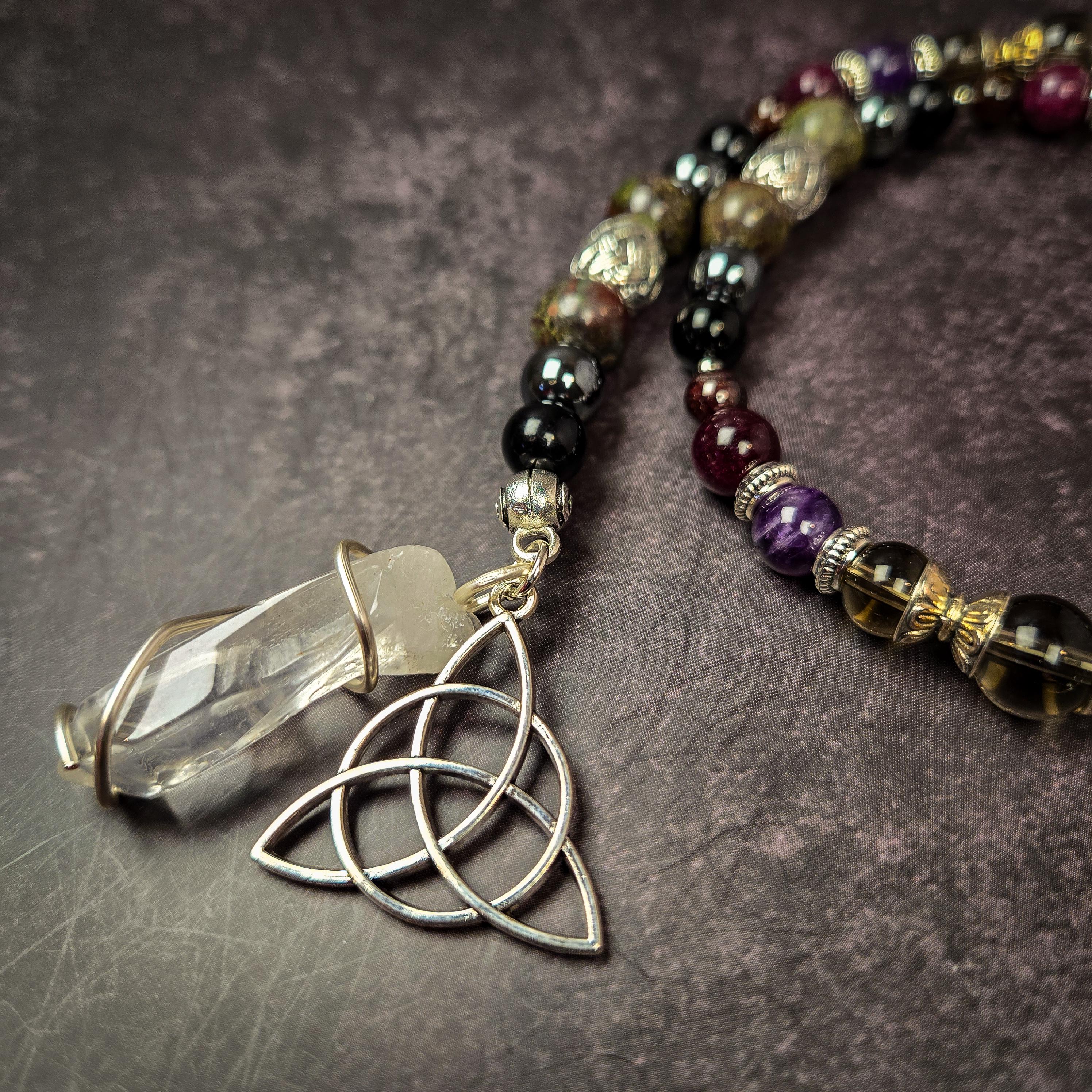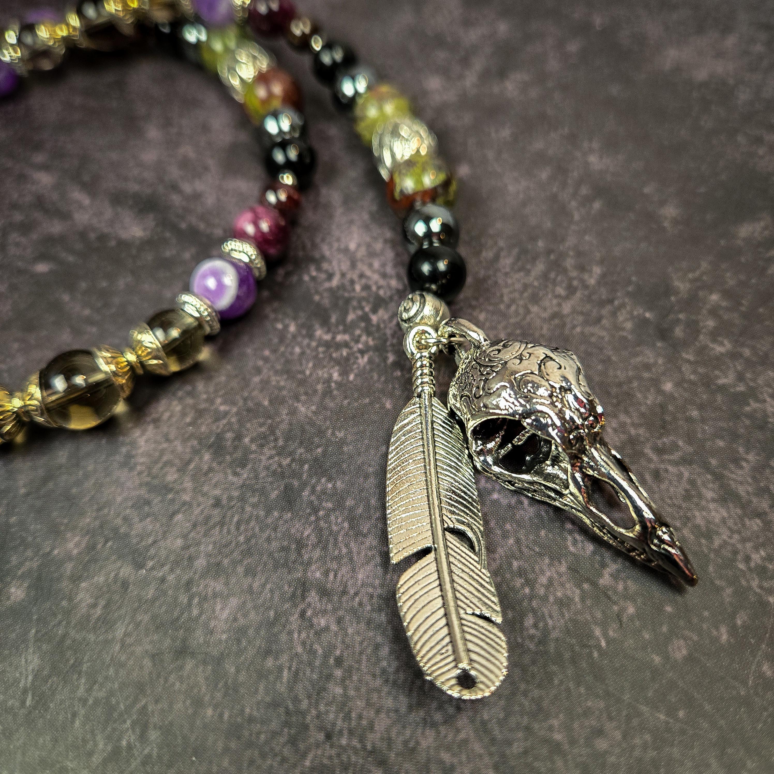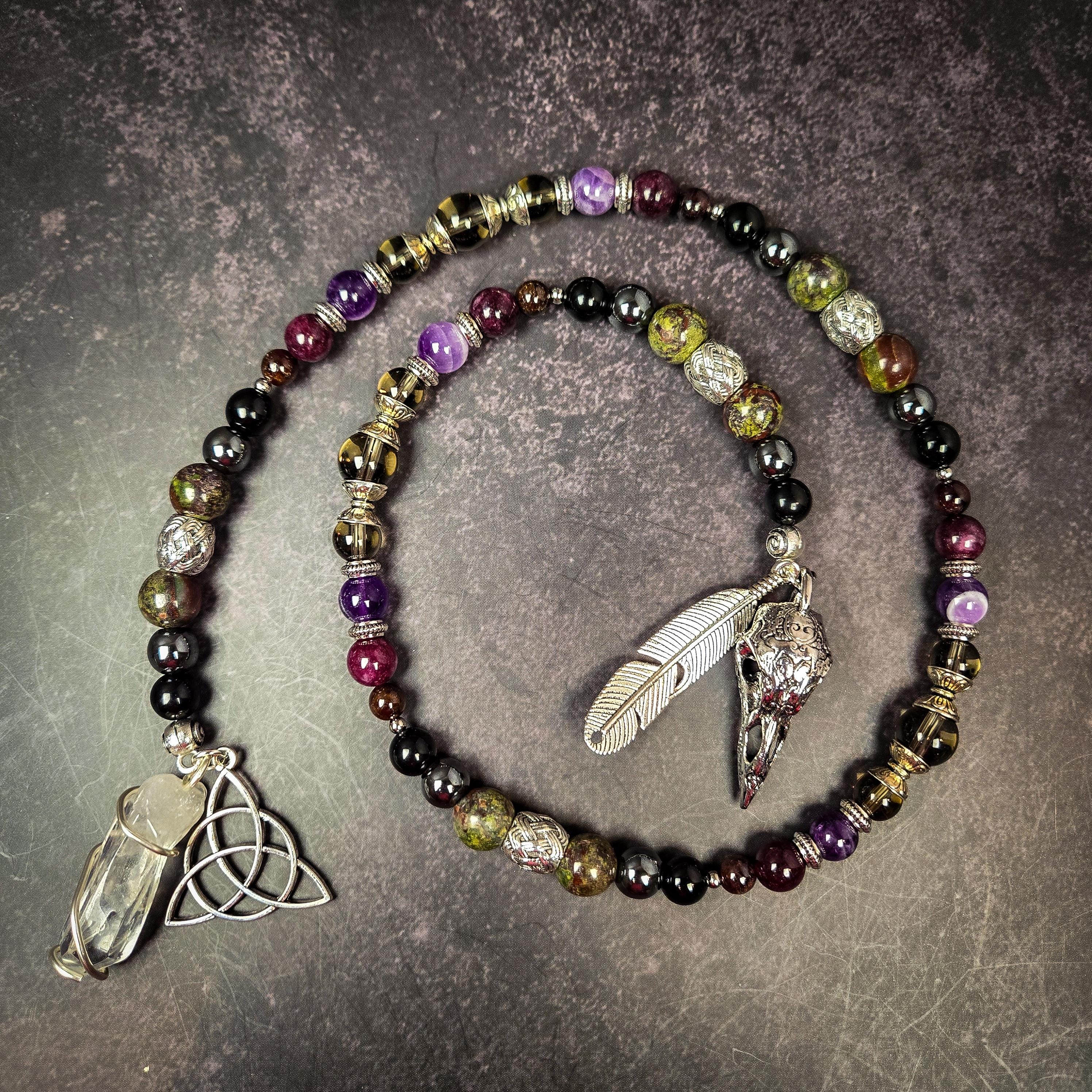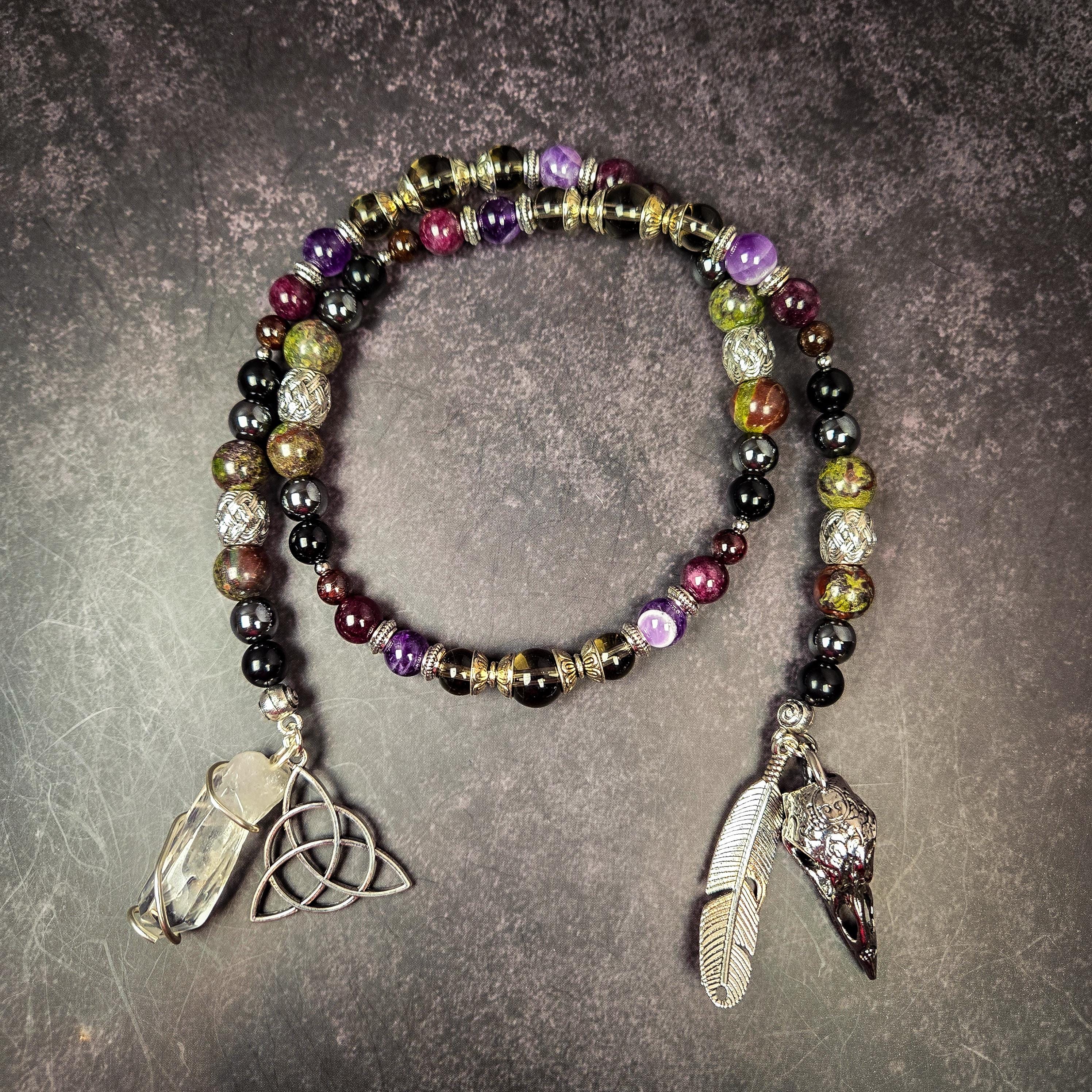 Honor the fierce and sovereign energy of The Morrígan, the Celtic goddess of battle, prophecy, fate, and transformation. This handcrafted prayer bead set is designed to embody her shadowed wisdom, protective strength, and initiatory fire.