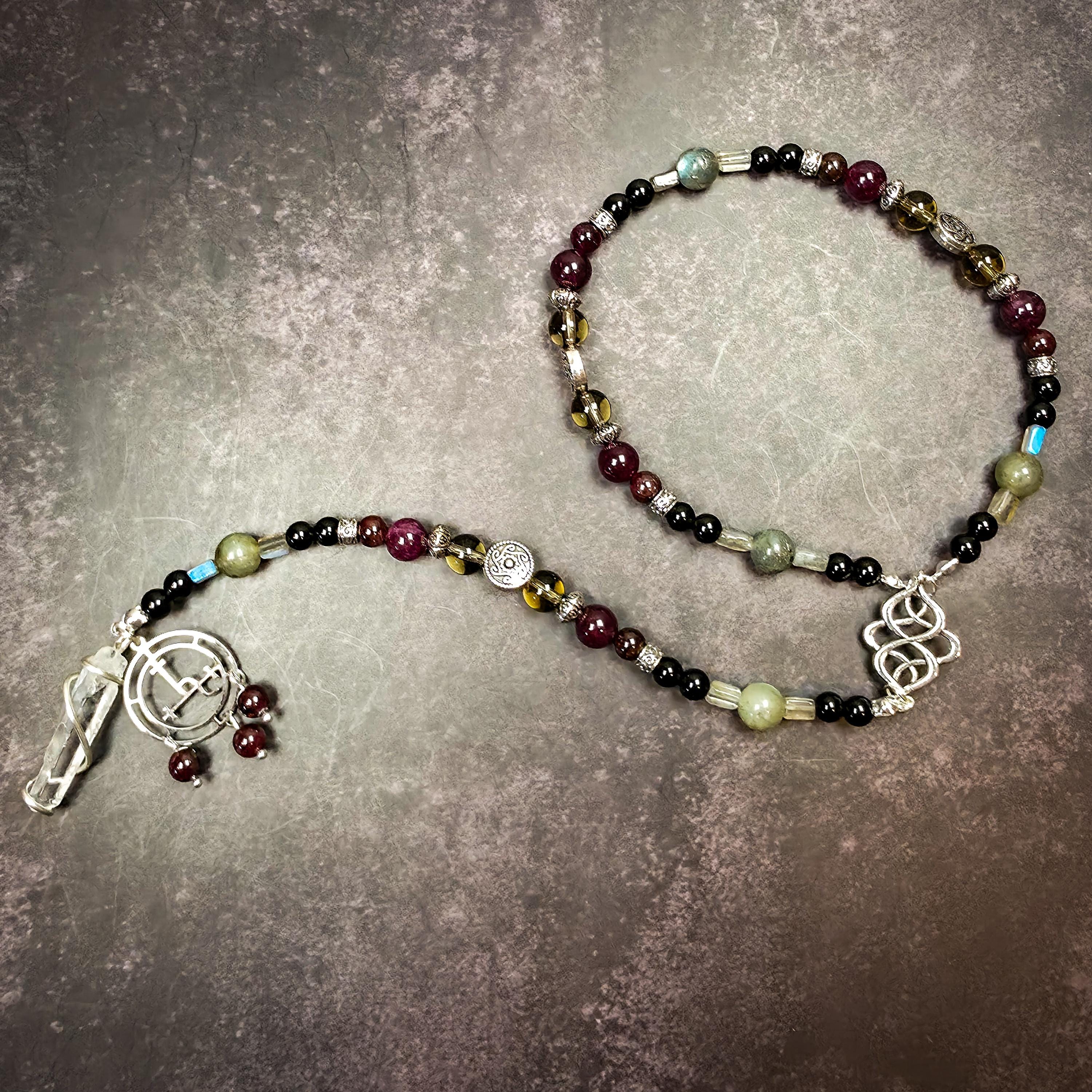 Reclaim your wild, untamed essence and stand in your sovereign power with this handcrafted devotional wrist rosary, dedicated to Lilith. Designed to be worn as both a sacred tool and a personal talisman, this wrap-style rosary channels the energy of the First Mother of Rebellion and the mysteries of the dark moon.