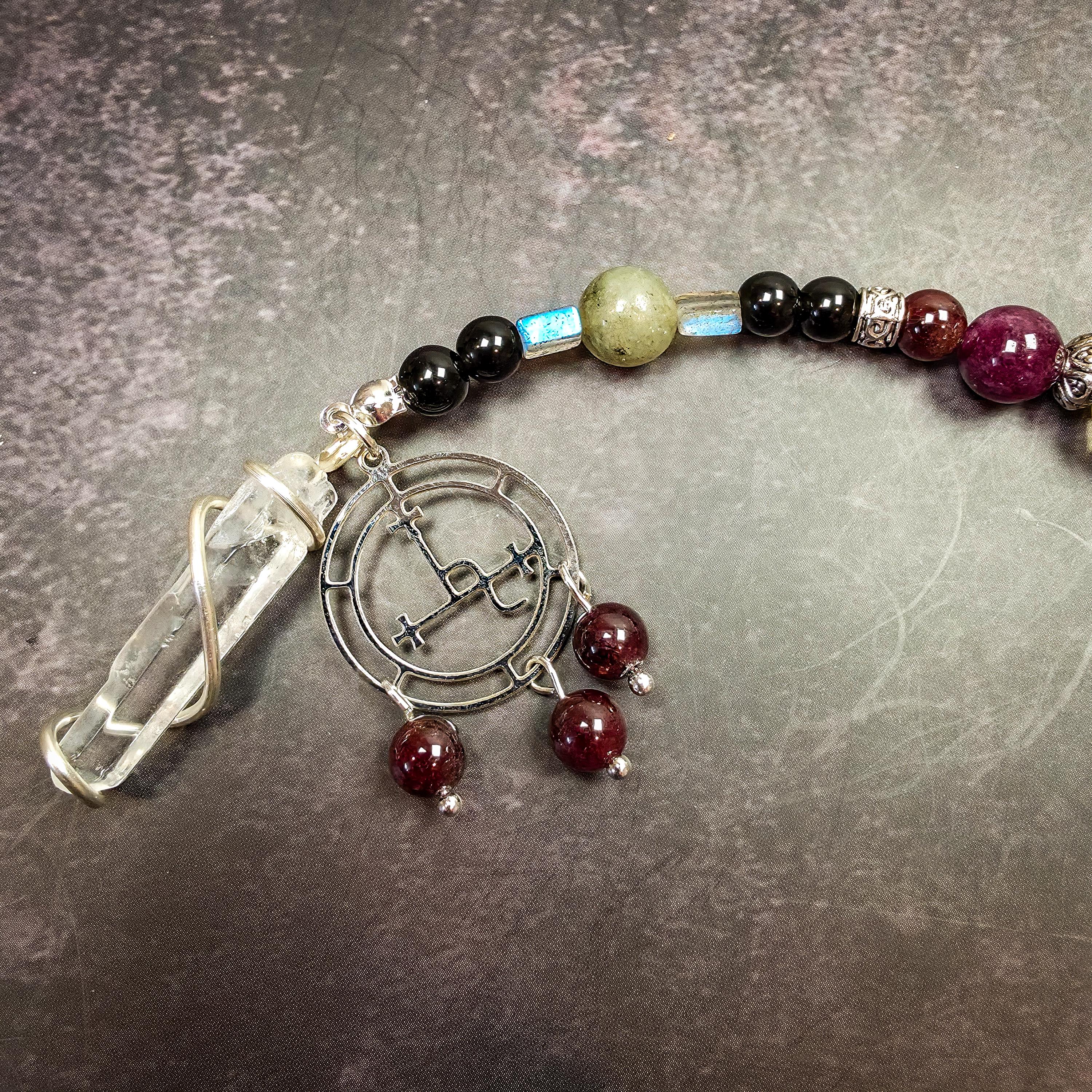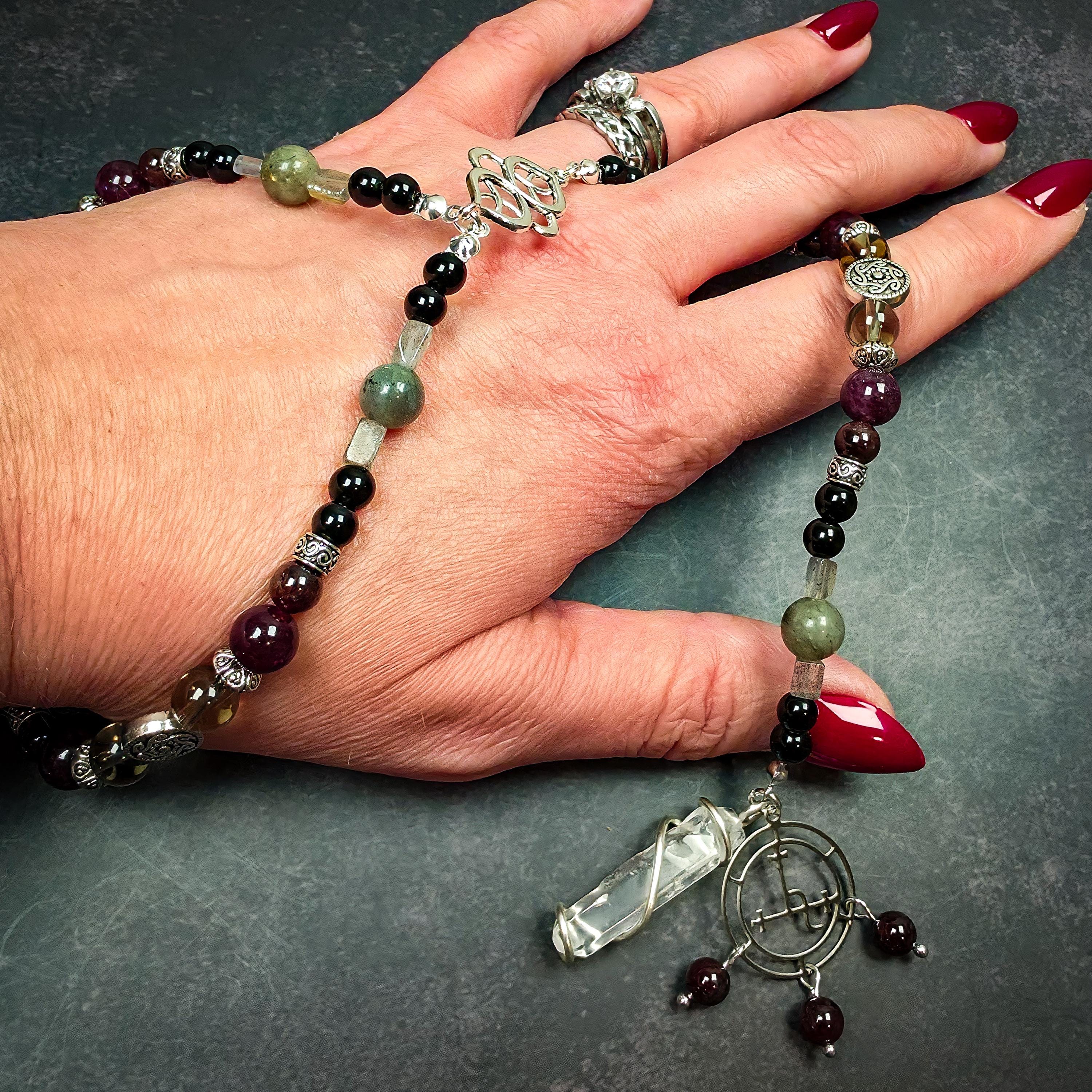 Adorned with her sacred sigil, this wrist rosary is designed to stay with you throughout your day or during deep ritual work. It serves as a constant reminder of your own boundaries and the fierce, independent spirit that Lilith embodies.