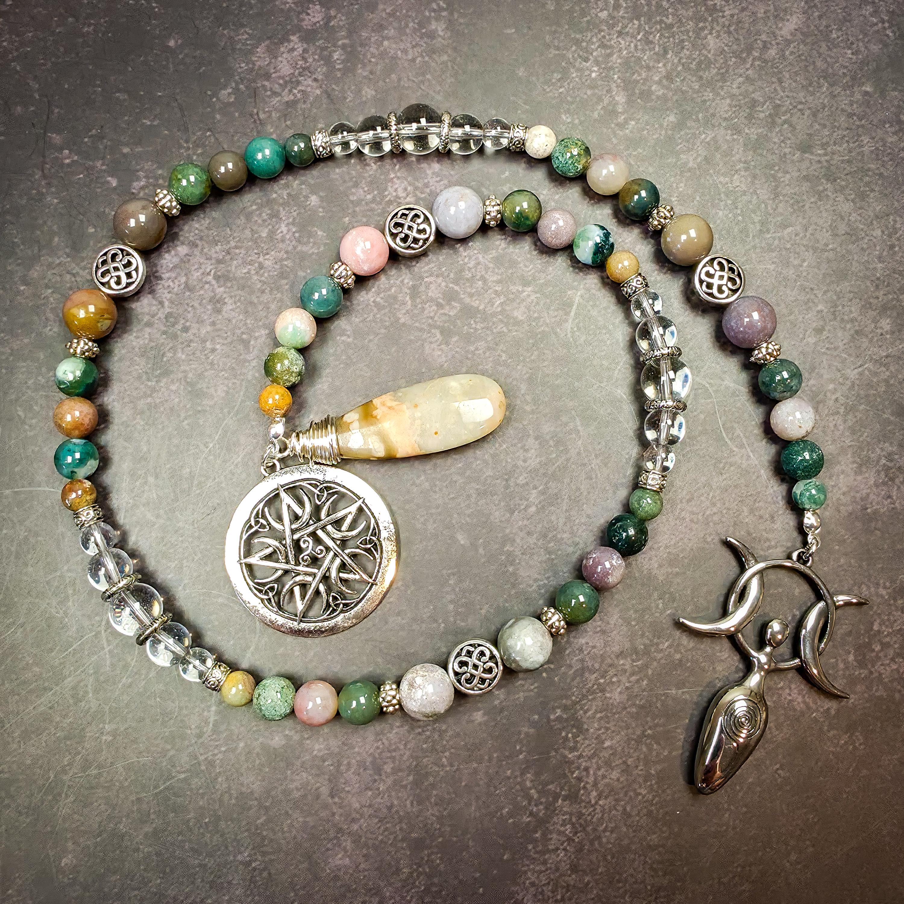 Each set of prayer beads is handcrafted with intention and care and should be treated with the same respect you would give to a cherished piece of jewelry. To preserve the integrity of the beads and the cord, avoid prolonged exposure to water, including submerging or wearing them in the shower, bath, or during ritual immersion. Moisture can weaken the cord and damage certain stones and metal components. Additionally, these sets are not designed to be carried in tight pockets or subjected to excessive bending, tugging, or abrasion. When not in use, we recommend storing your beads in a pouch or on an altar to keep them safe. With mindful care, your prayer beads will remain a long-lasting spiritual companion.