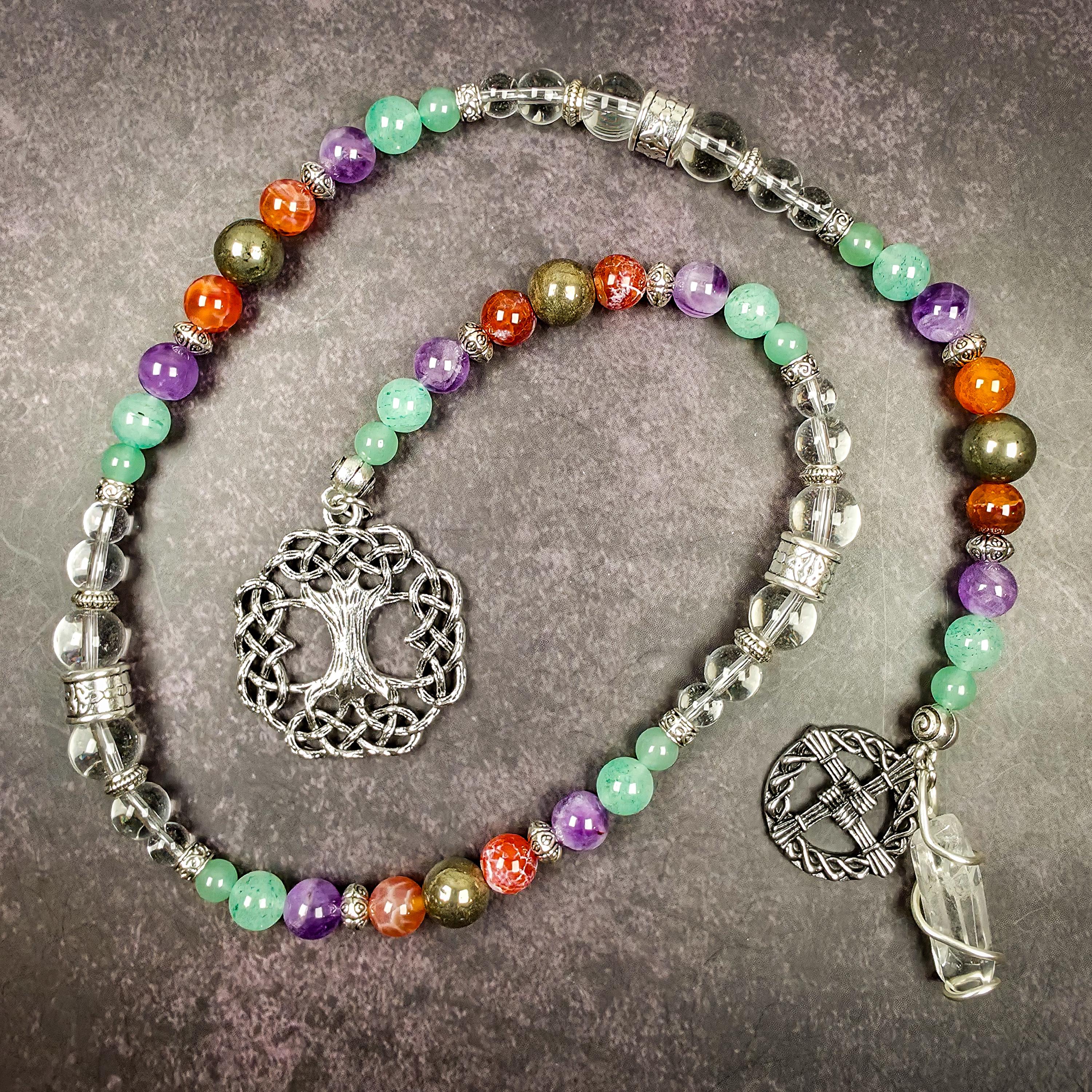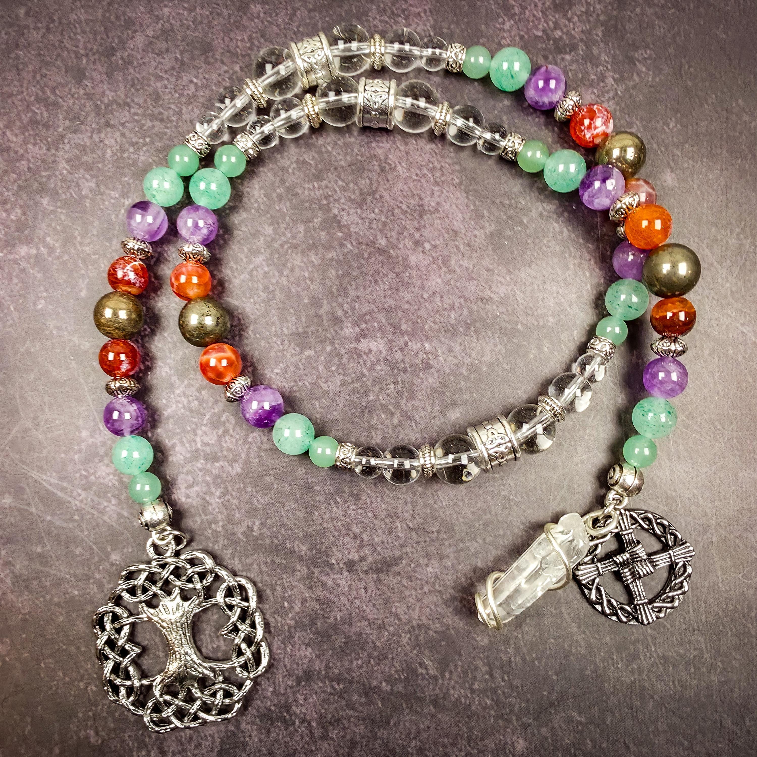 Invite Brigid’s warmth, inspiration, and abundance into your life with this uniquely crafted Celtic goddess prayer bead set.