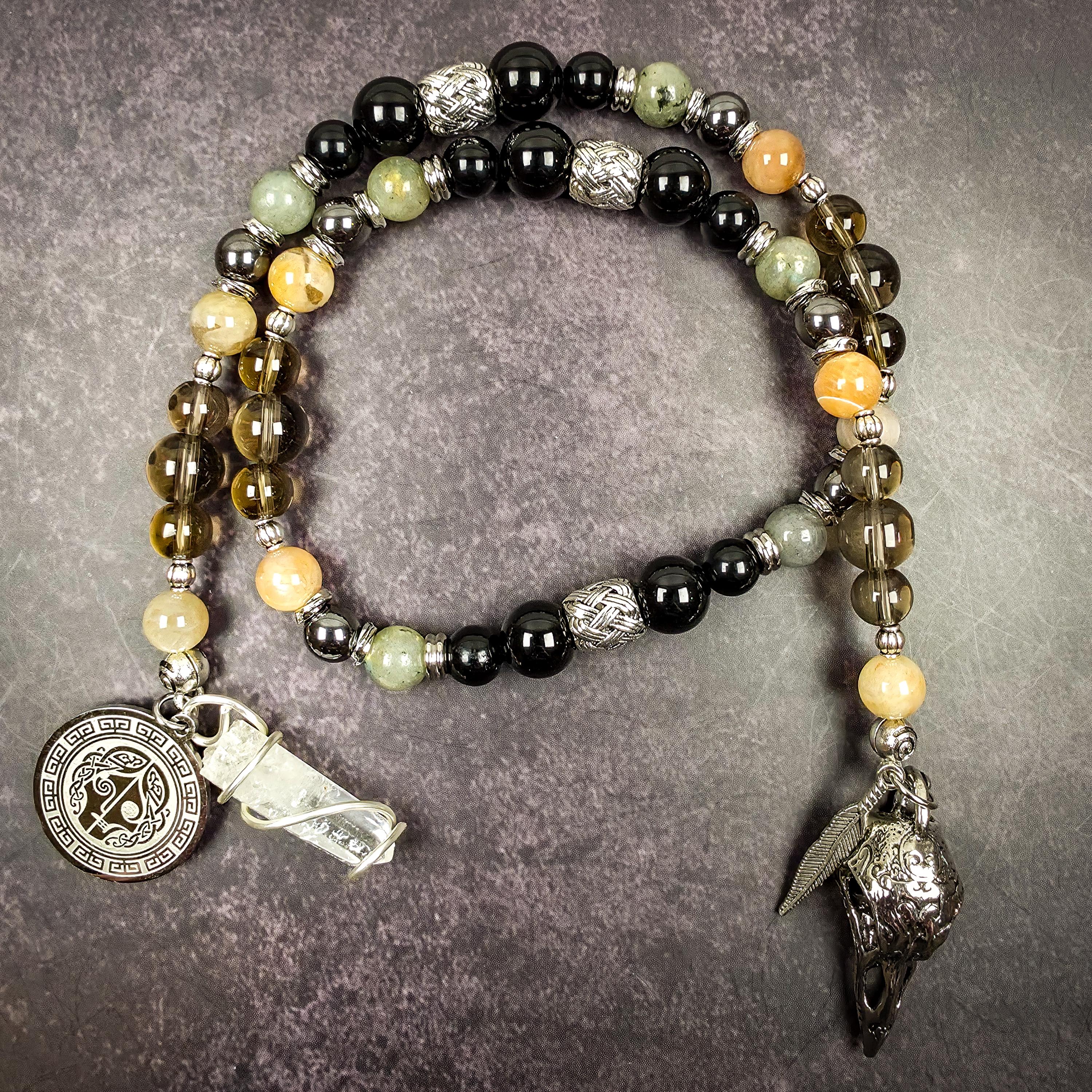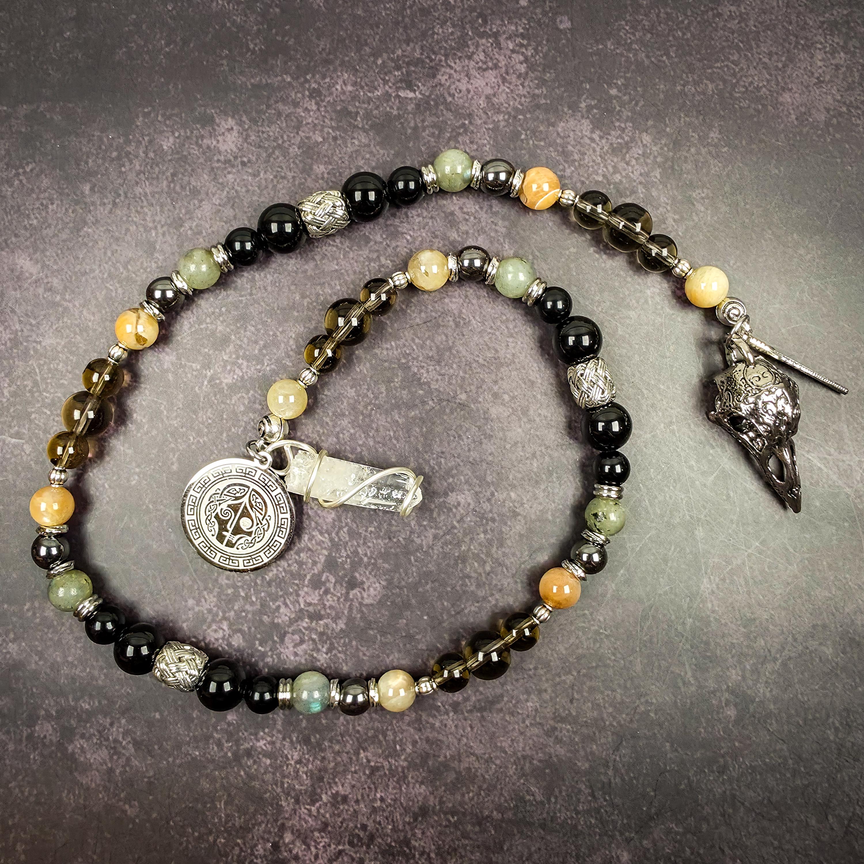 Honoring the Keeper of the Unseen, this handcrafted set of devotional beads is designed to reflect the quiet power and balanced duality of the Goddess Hel. As the ruler of the realm beyond, she embodies the transition between life and the ancestral deep, offering a space of rest, transformation, and profound stillness.
