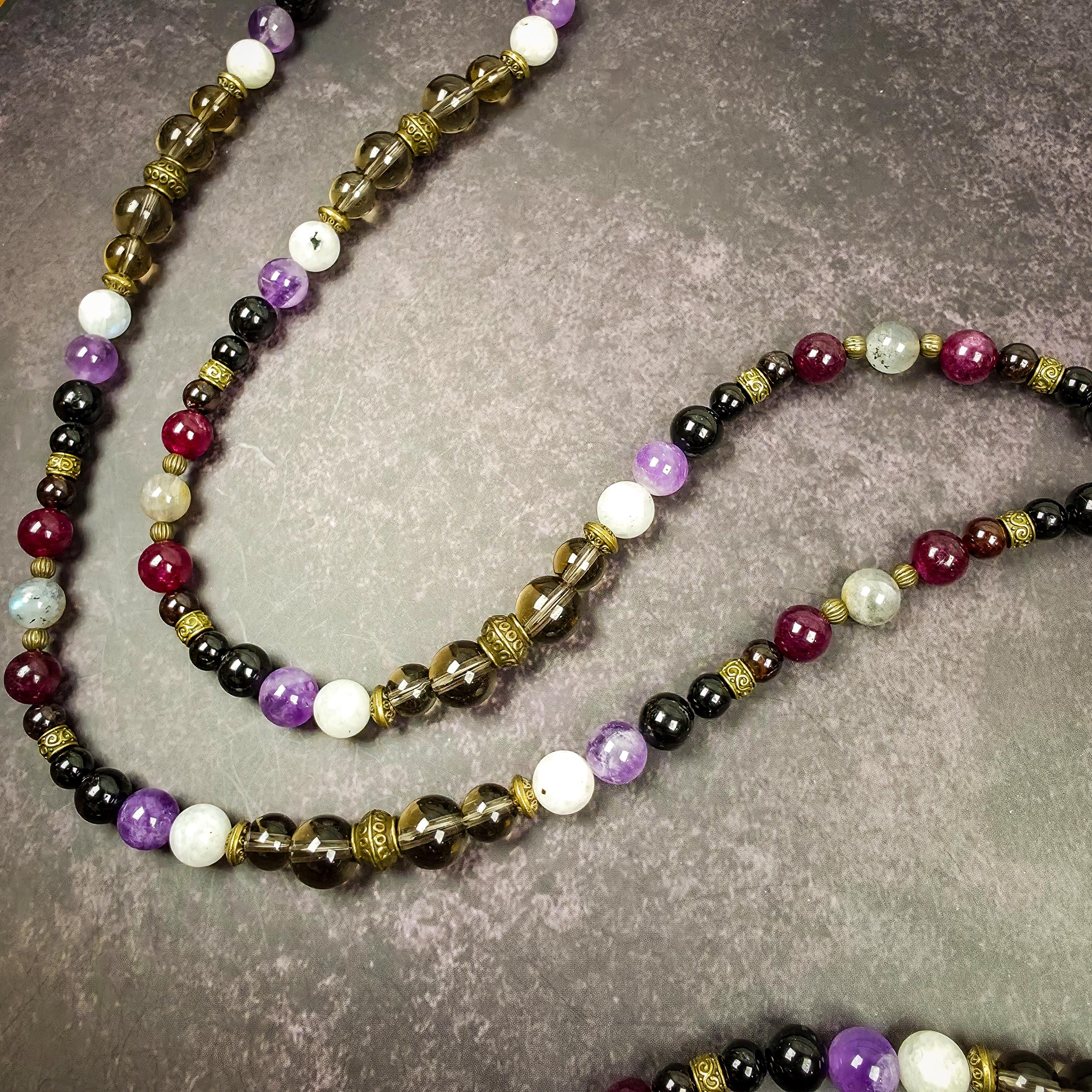 Honoring the Queen of the Crossroads and the Keeper of the Keys, this handcrafted wearable rosary is dedicated to the Goddess Hekate. As the Mistress of the Three Ways, she guides the soul through the transitions of life, death, and rebirth. This set is designed as both a ritual tool and a protective talisman, capturing her role as the light-bringer in the darkness and the guardian of the liminal.